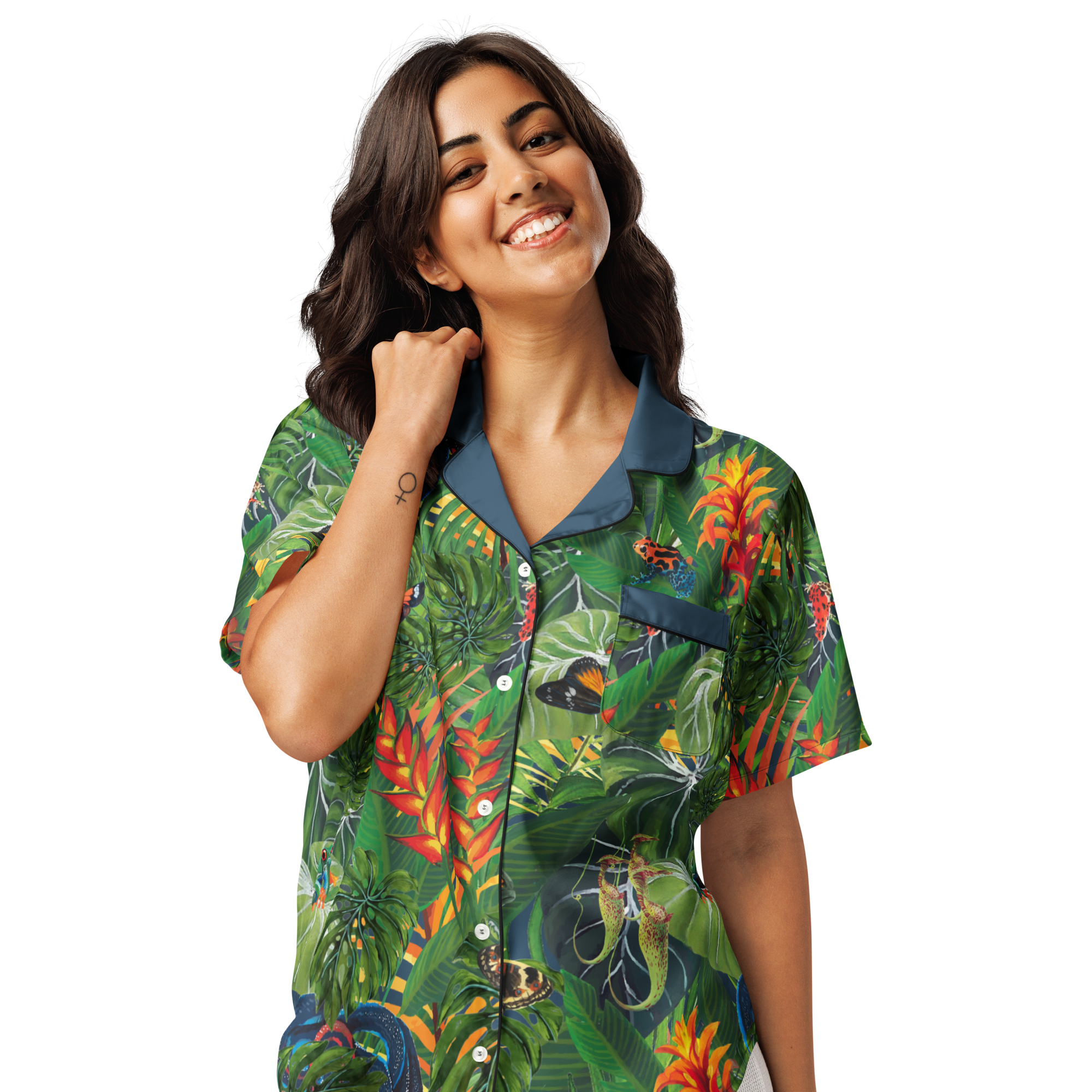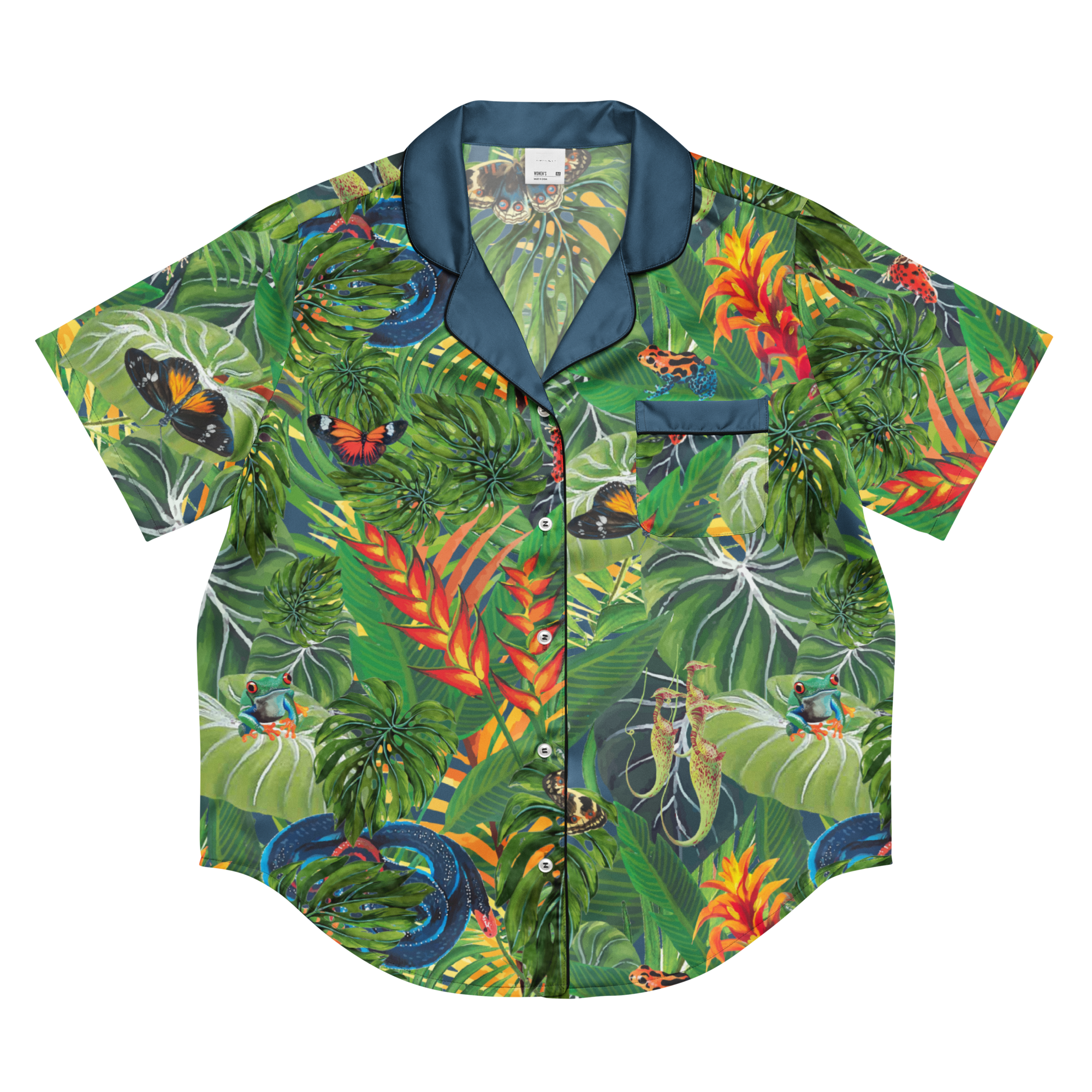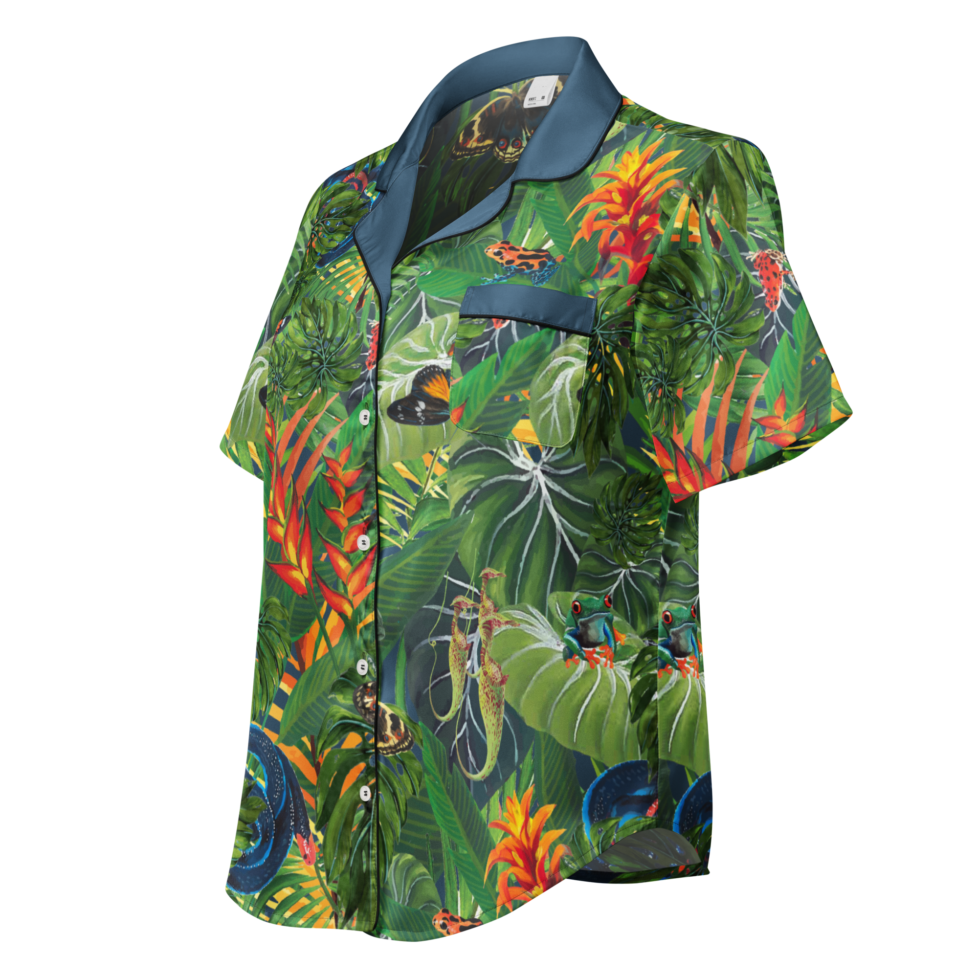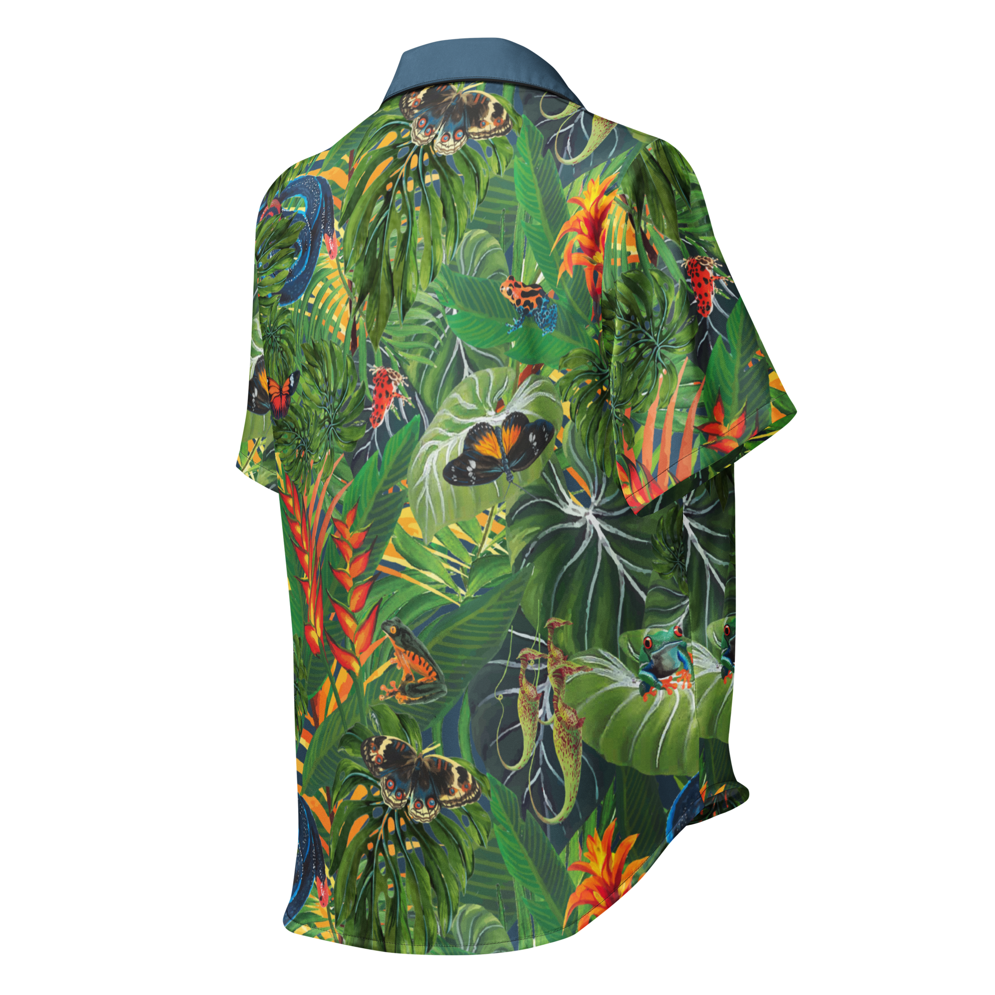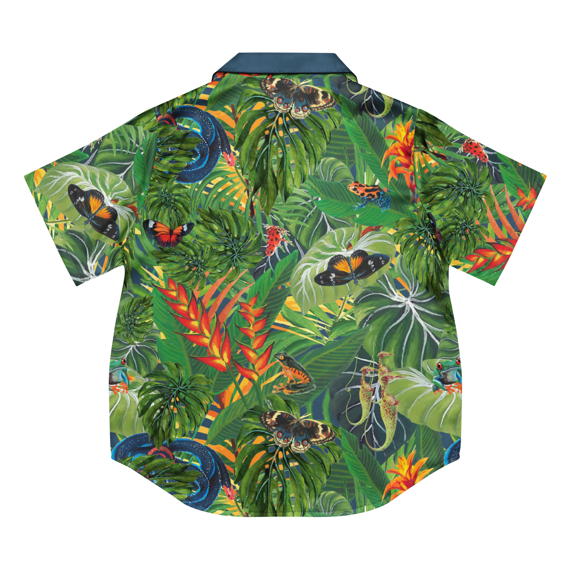 Our vivid Rainforest Canopy is a bold print inspired by the lush vegetation of the rainforest. This enchanting design incorporates the intricate details of exotic frogs and other inhabitants. By adorning garments with this striking pattern, Global Warming Wear aims to raise awareness about the beauty of nature and the critical importance of protecting endangered habitats and species, making a bold statement in the fight against climate change and biodiversity loss.