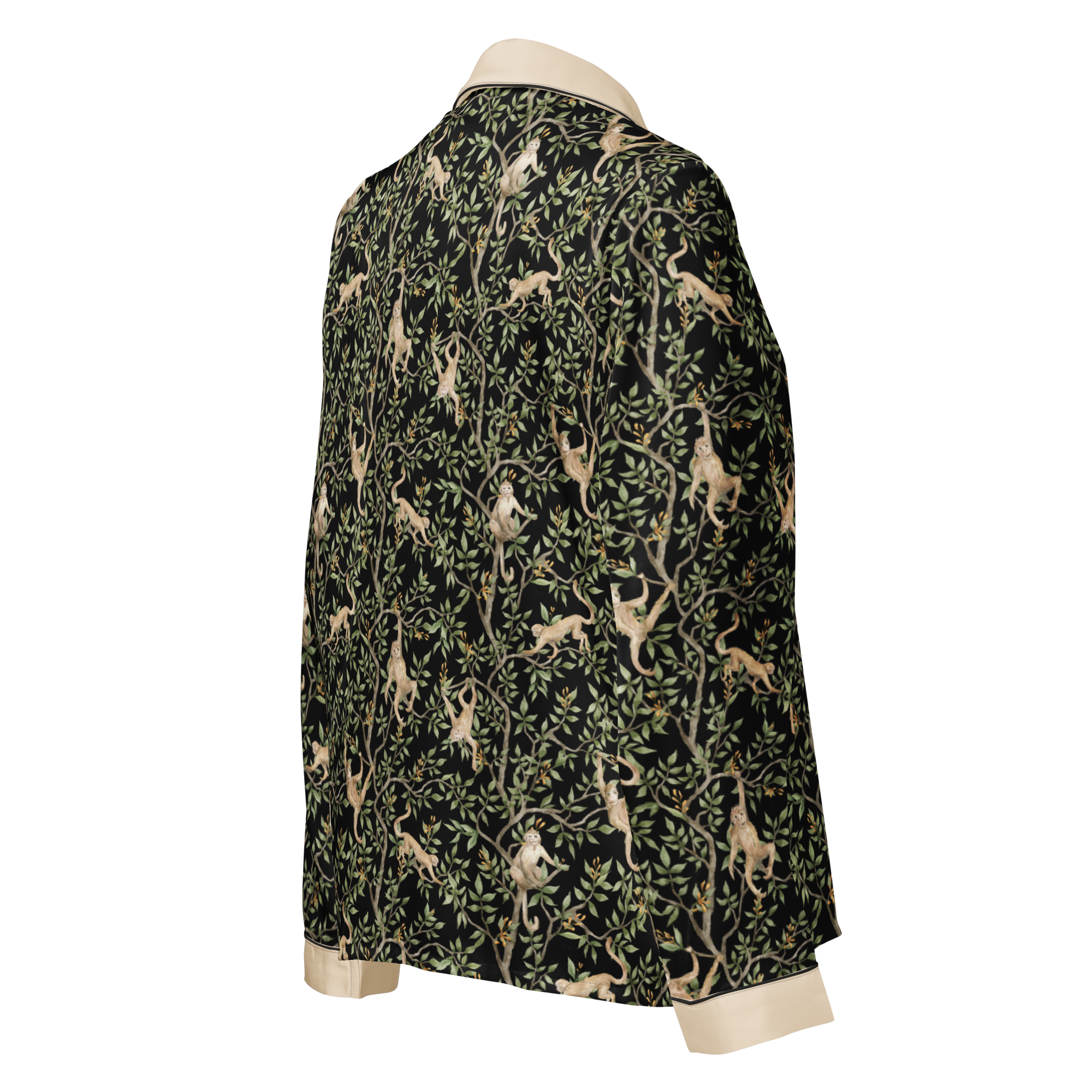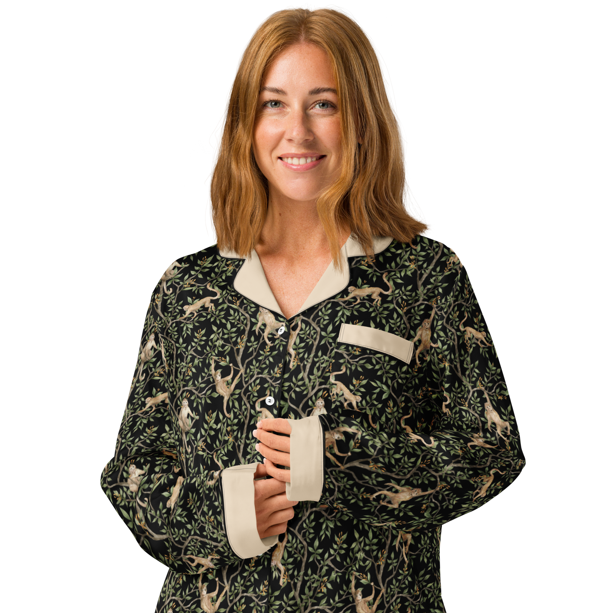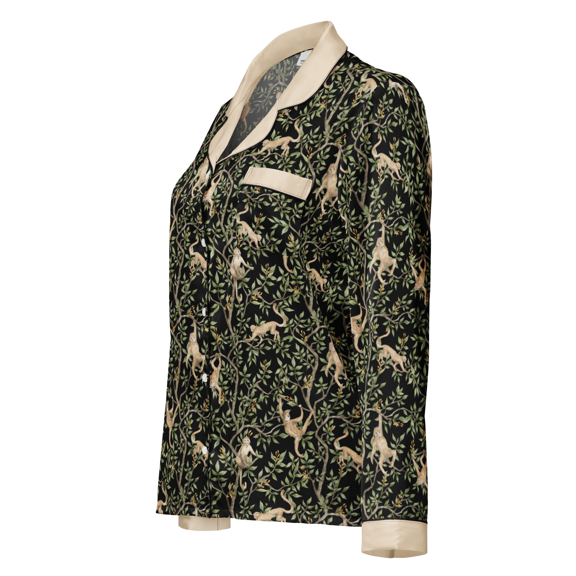 Monkey Business Women’s Long Sleeve Pajama Top - Black/Champagne Details/Black Piping