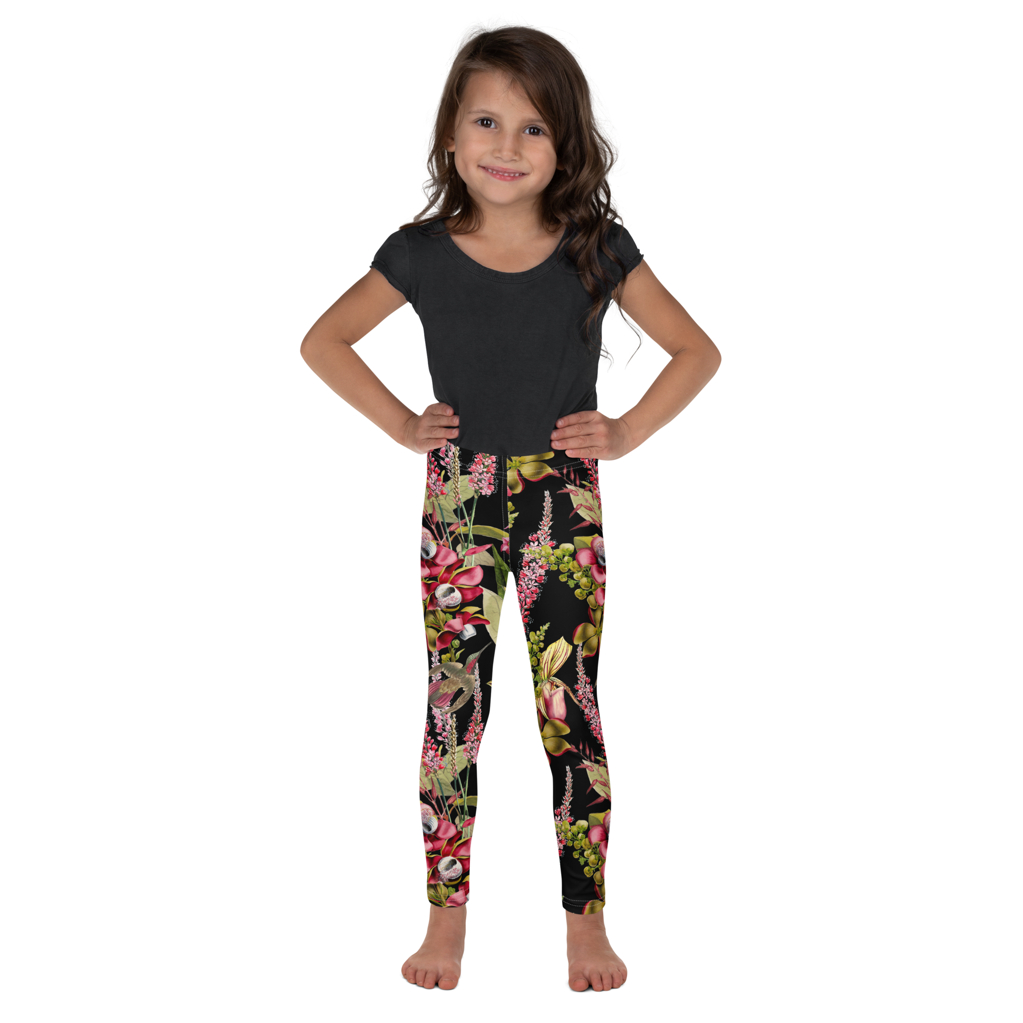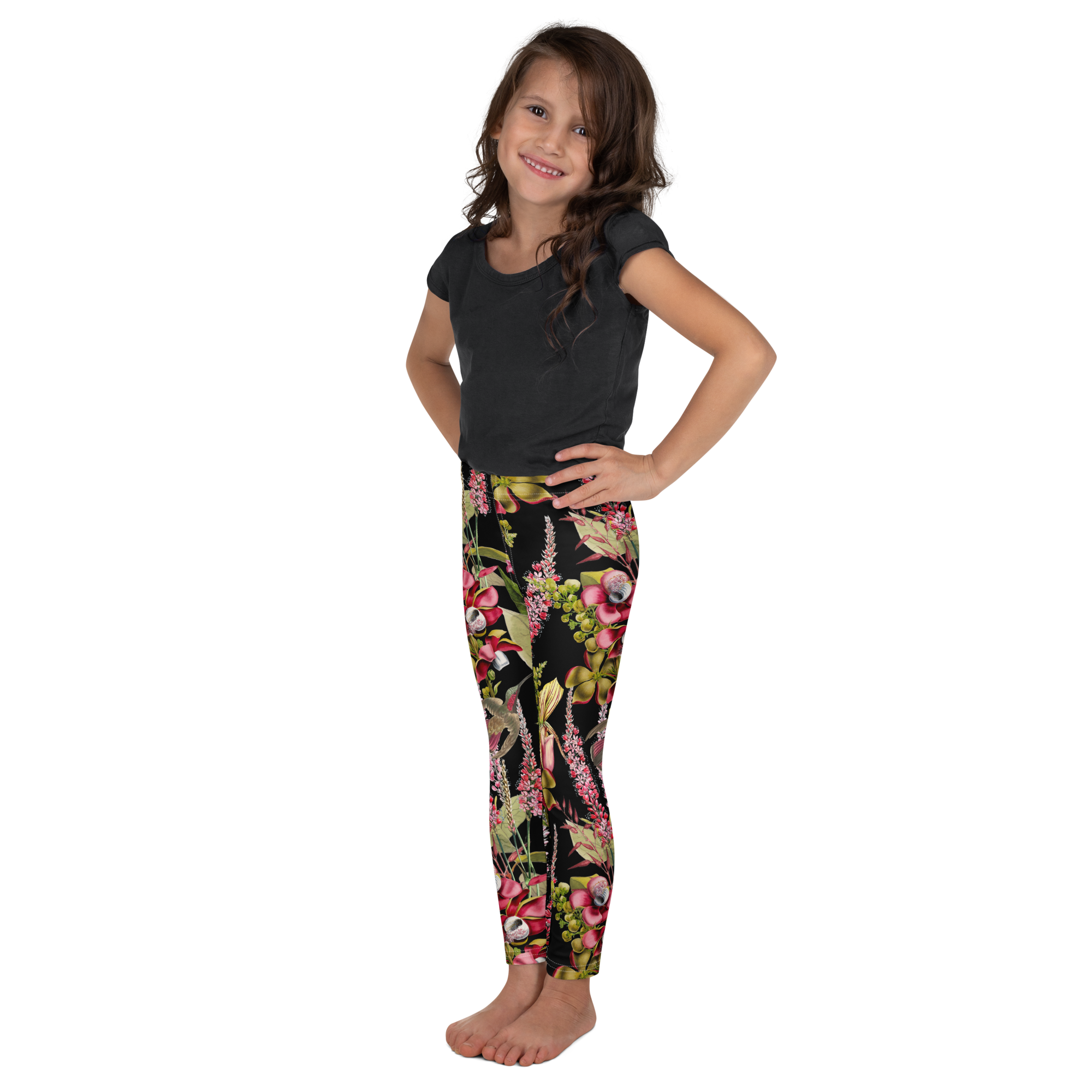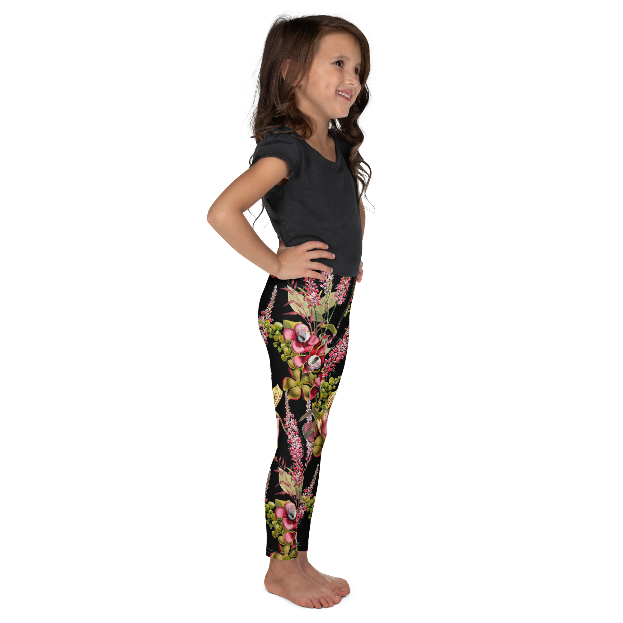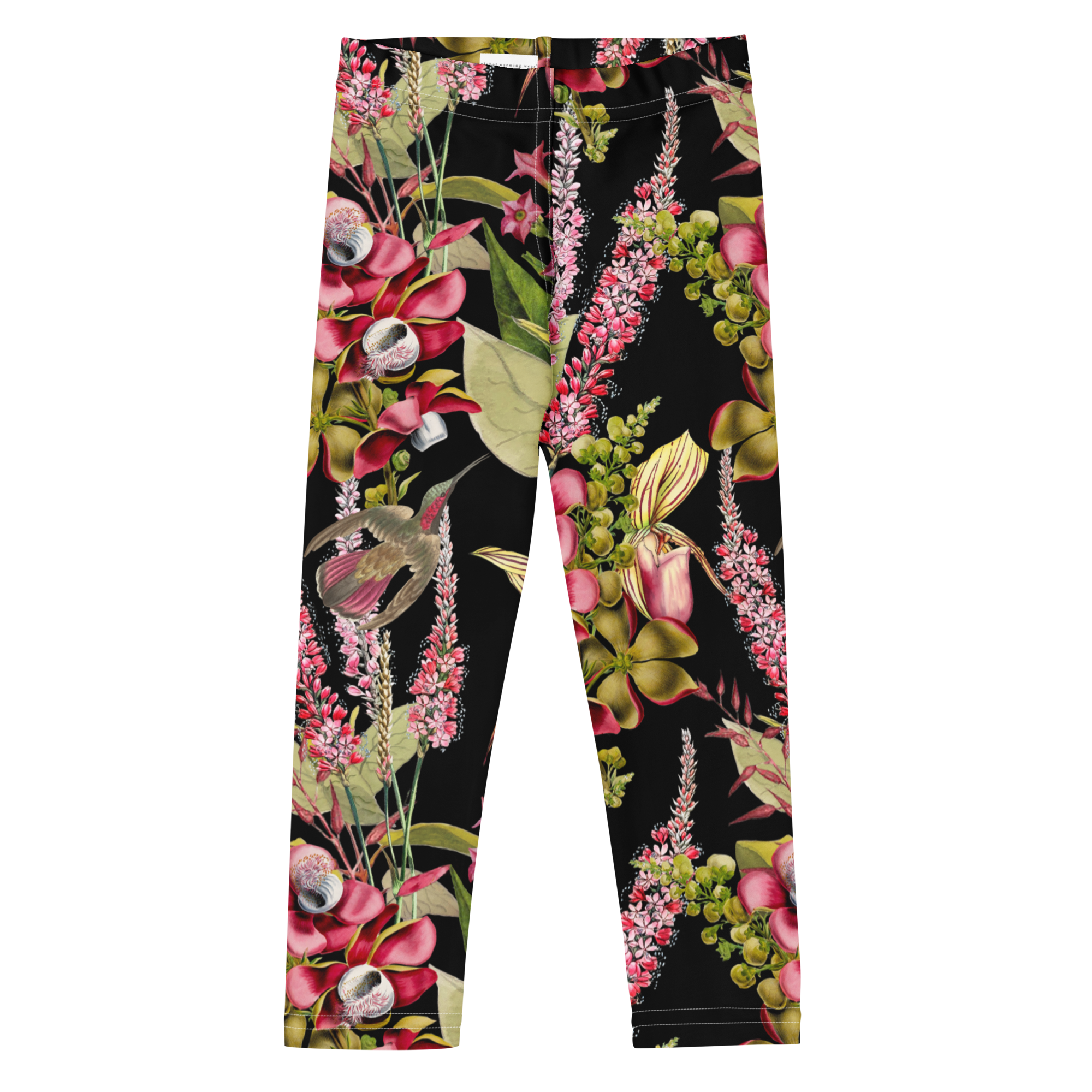 Pink Blossom Kid's Leggings - X-large Print - Black