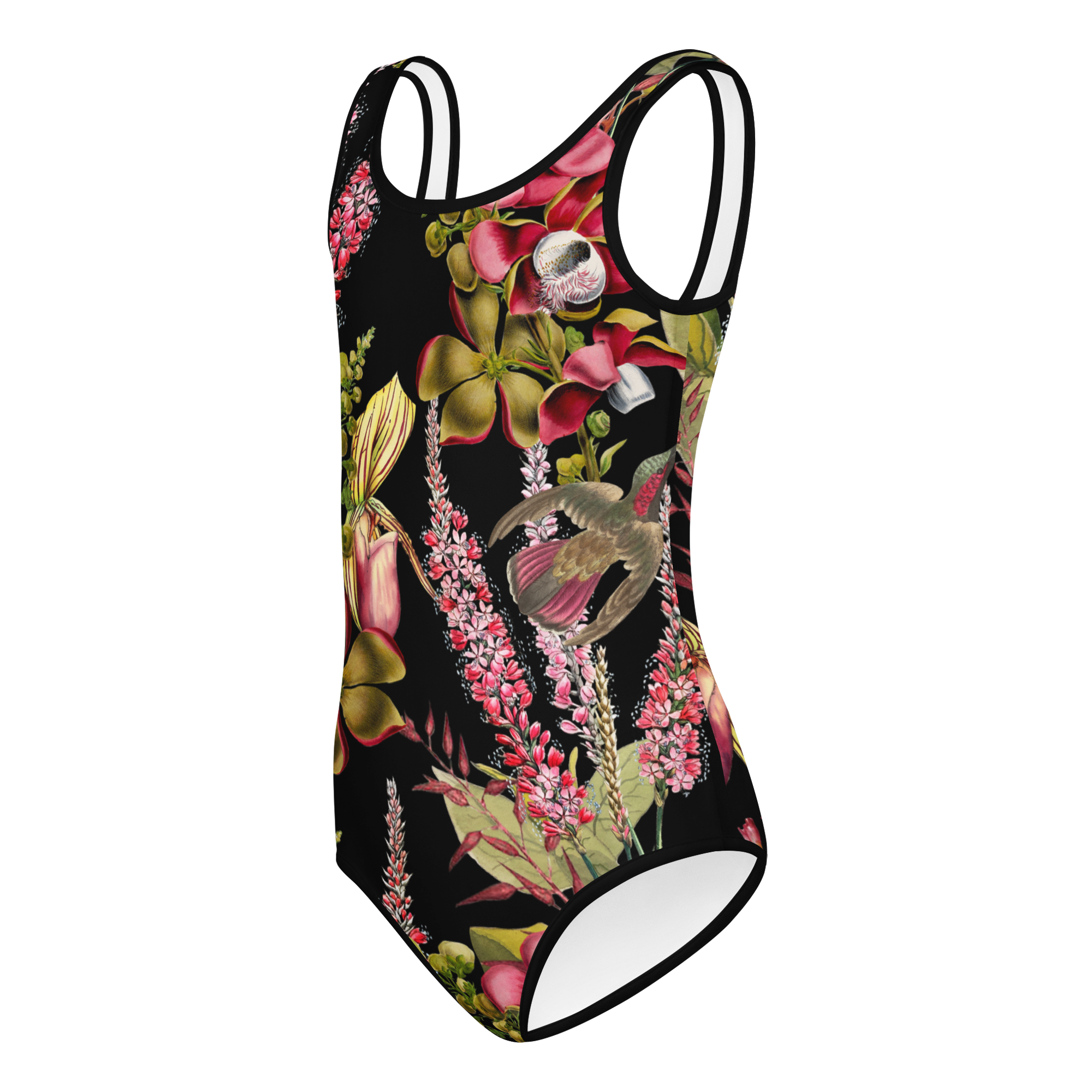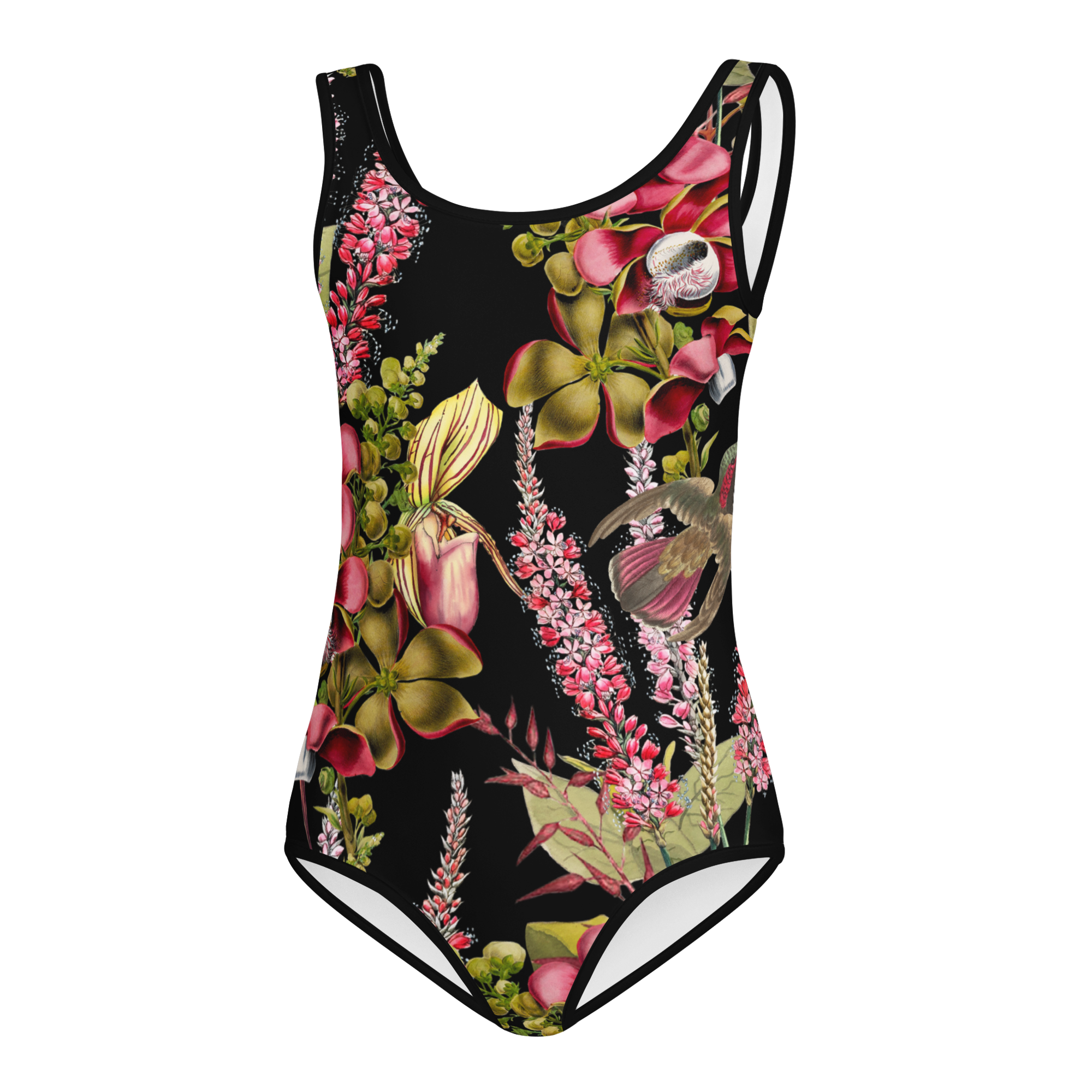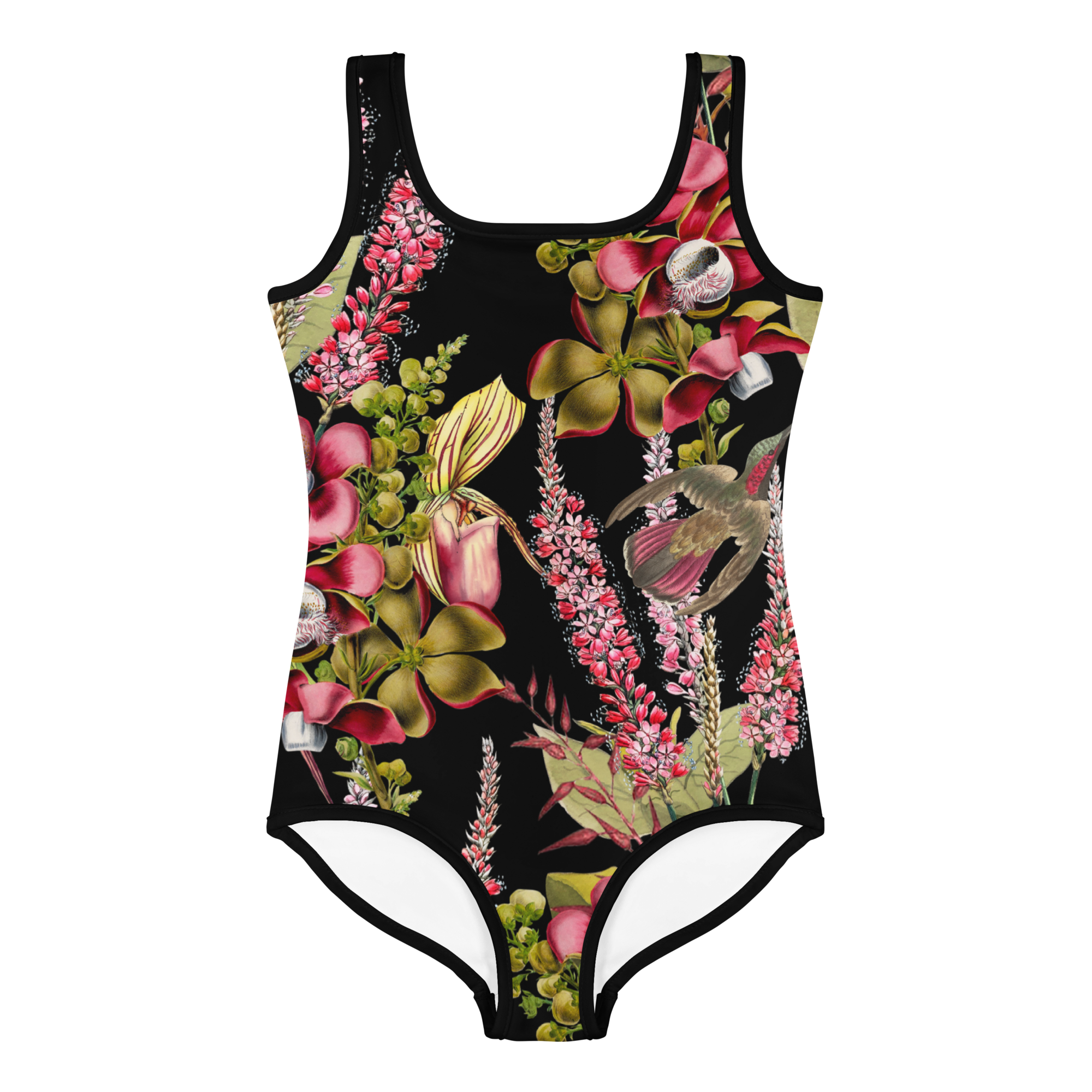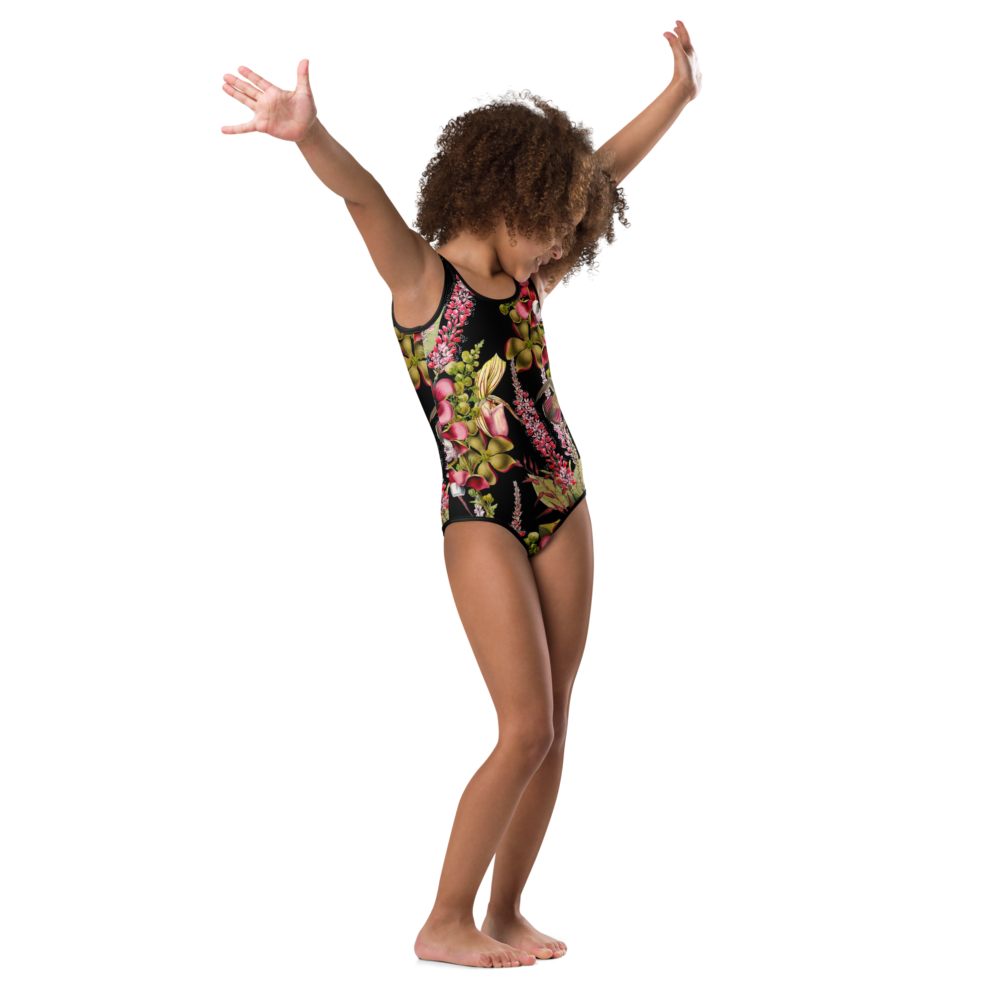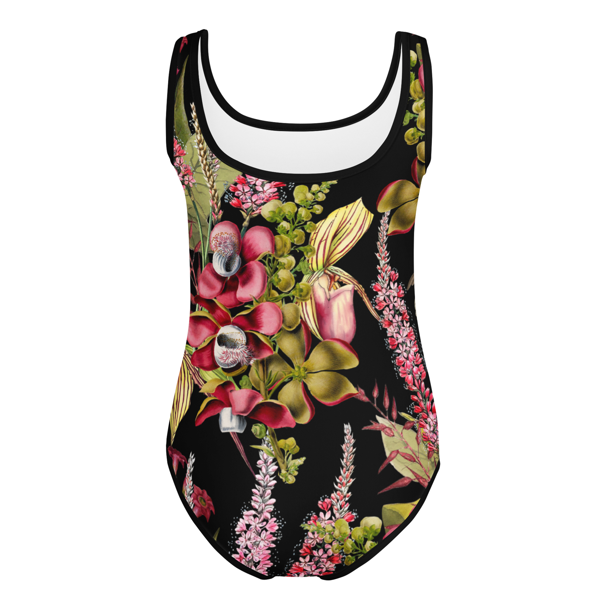 Pink Blossom Kid's Swimsuit - X-large Print - Black