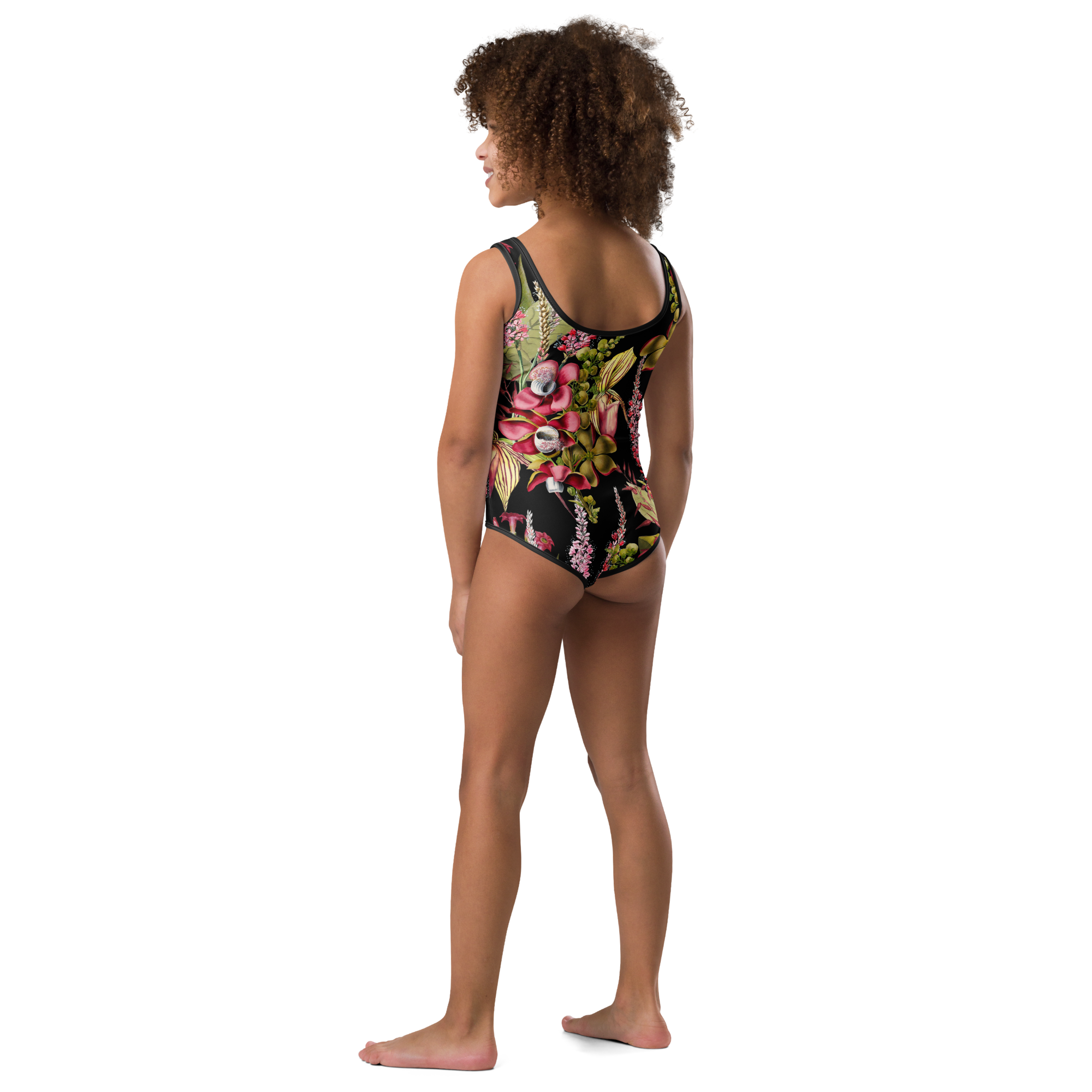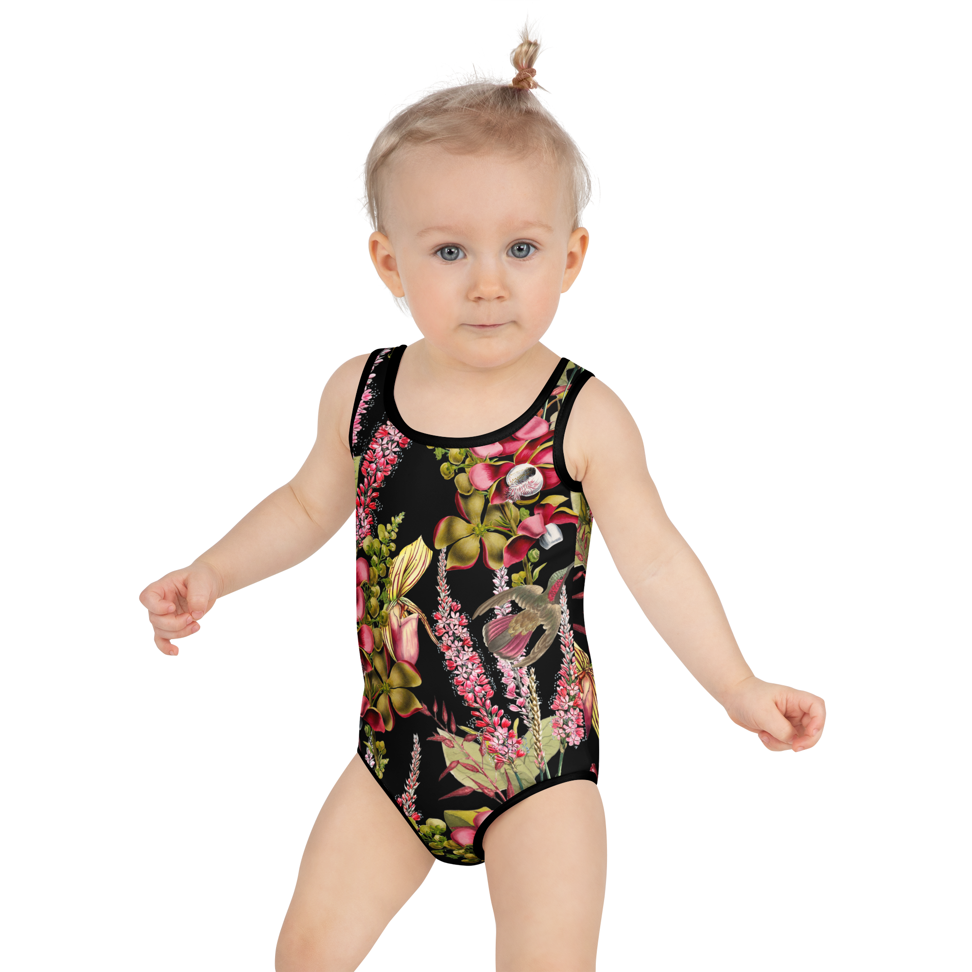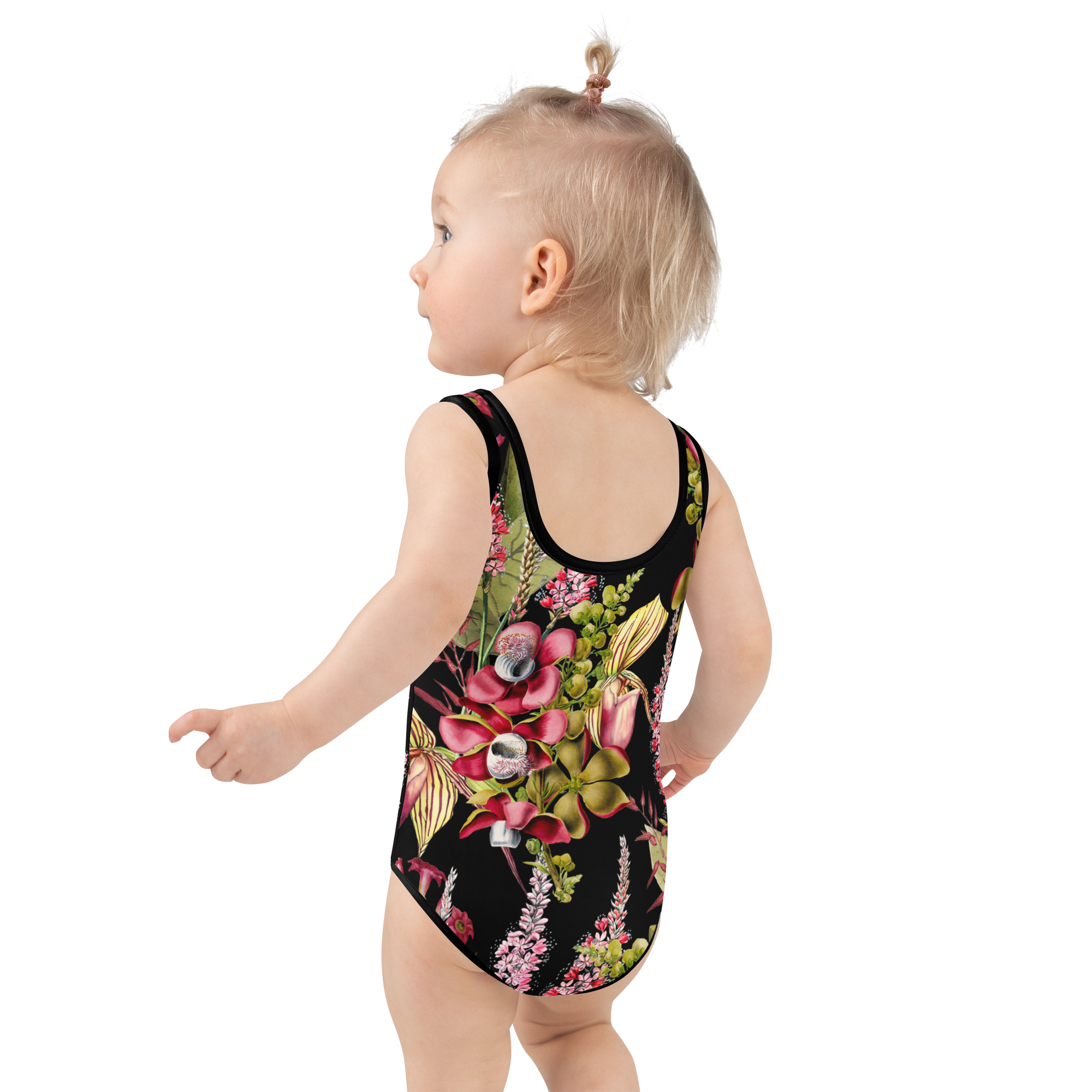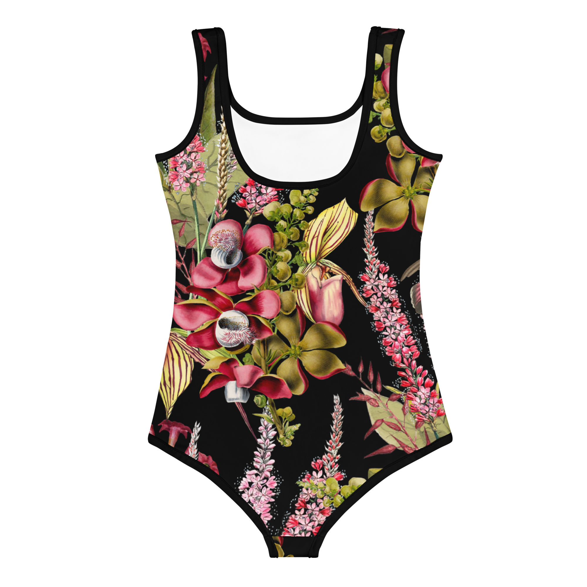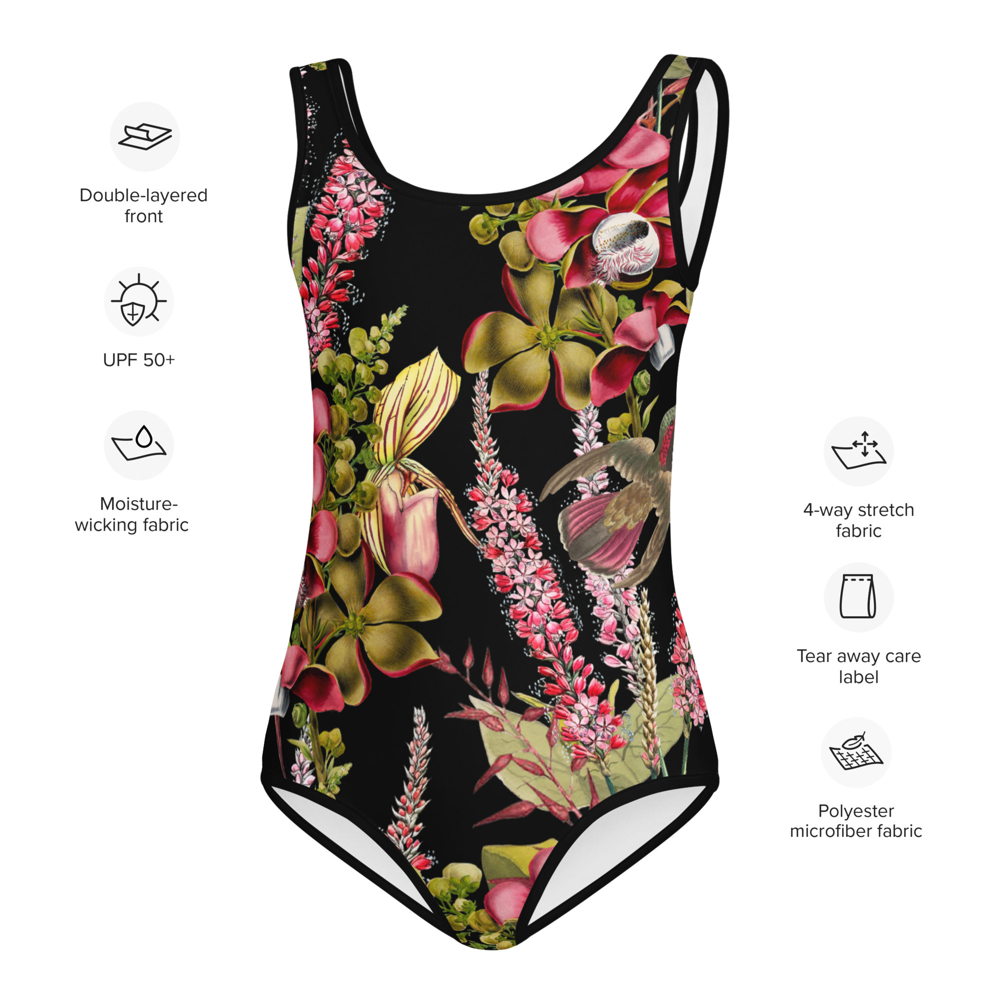 Pink Blossom Kid's Swimsuit - X-large Print - Black