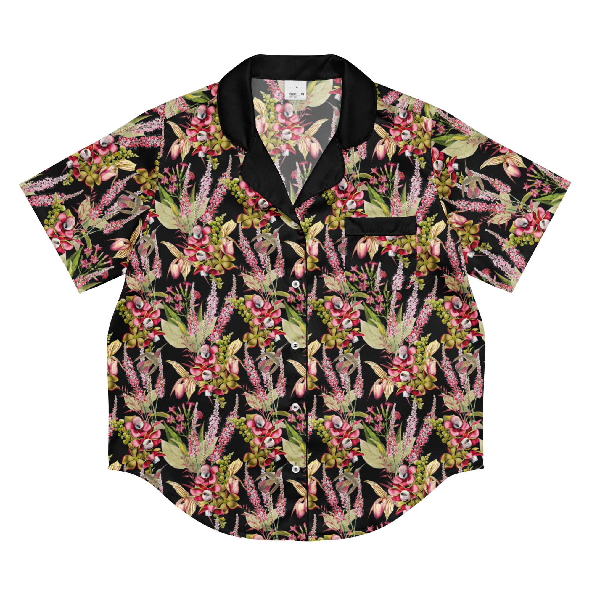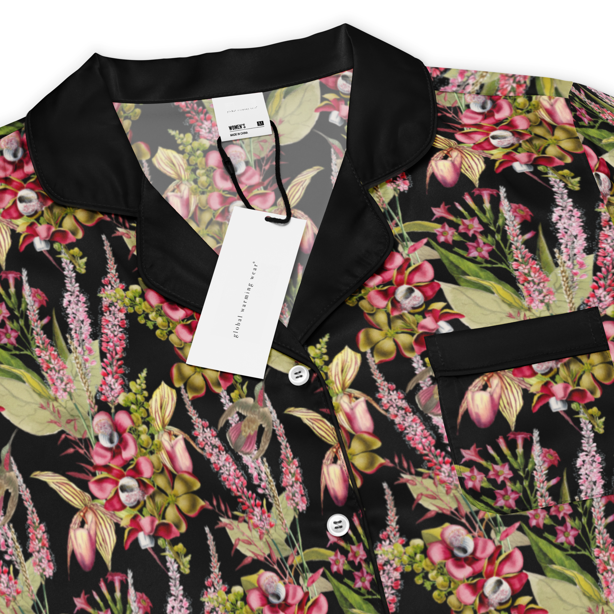 Pink Blossom Women’s Short Sleeve Pajama Top - Black/Black Details