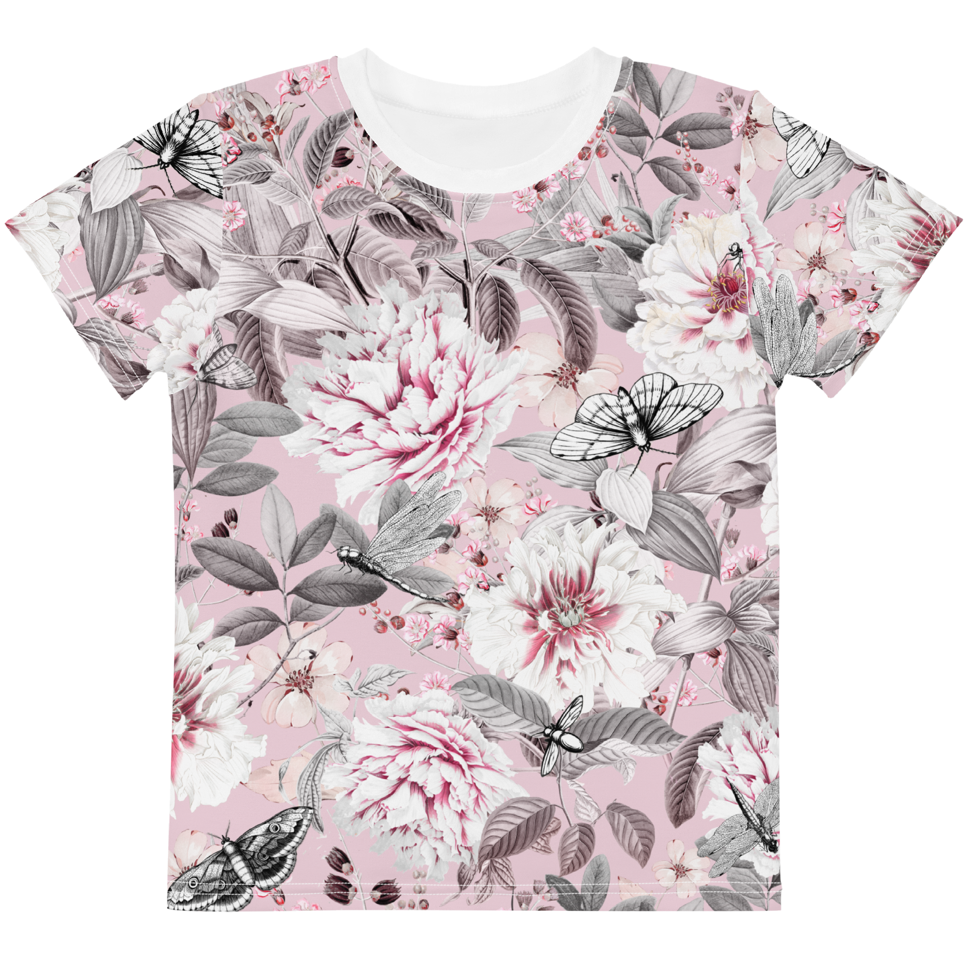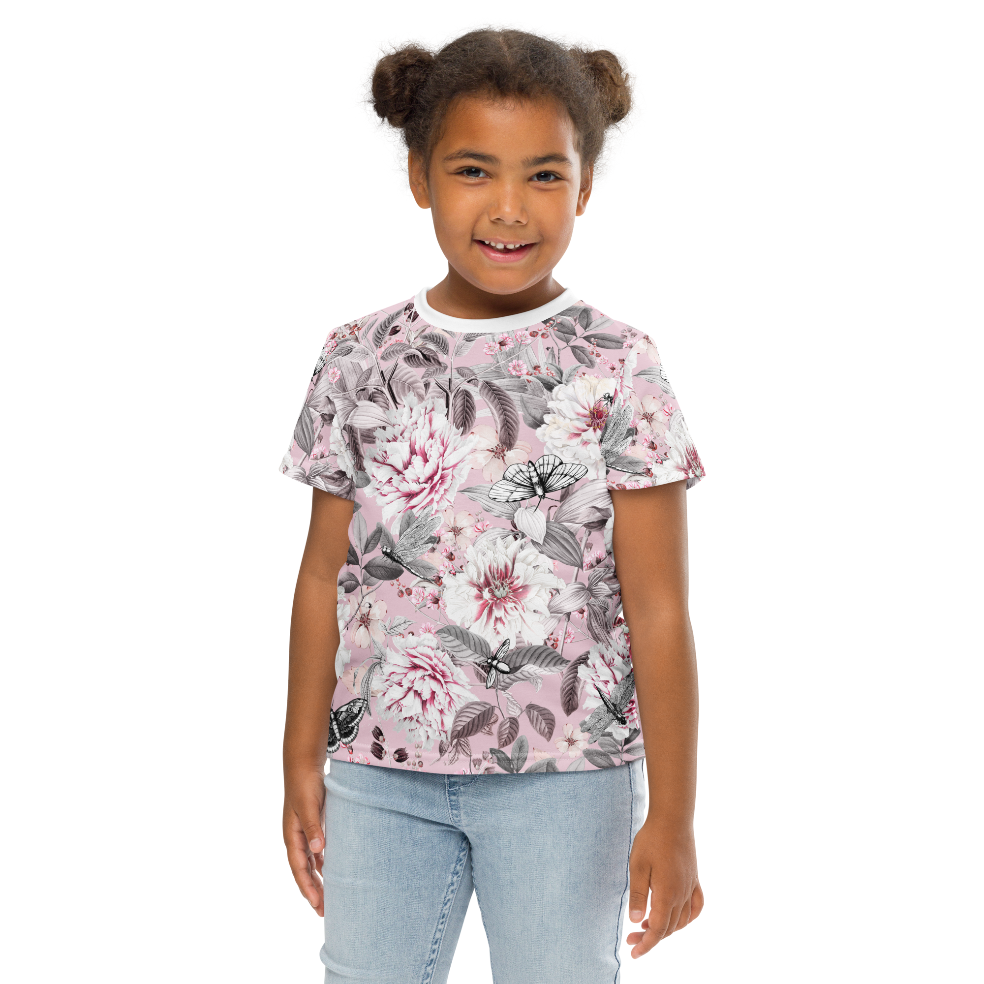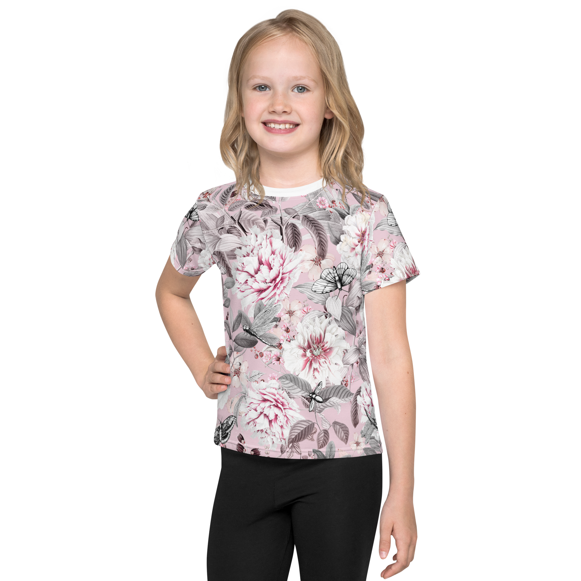 Serenity Kid's Crew Neck T-shirt - Pink Lace/White Trim