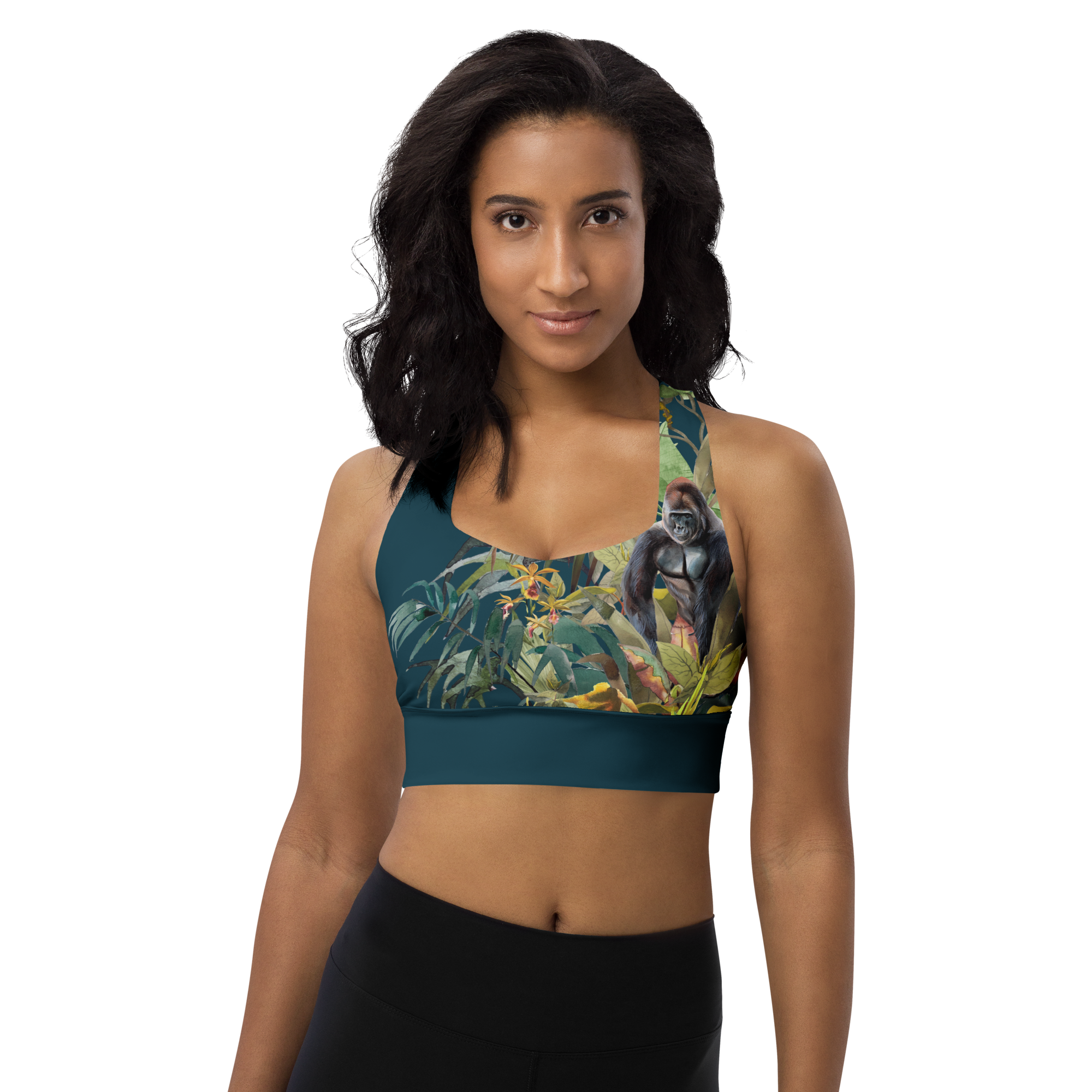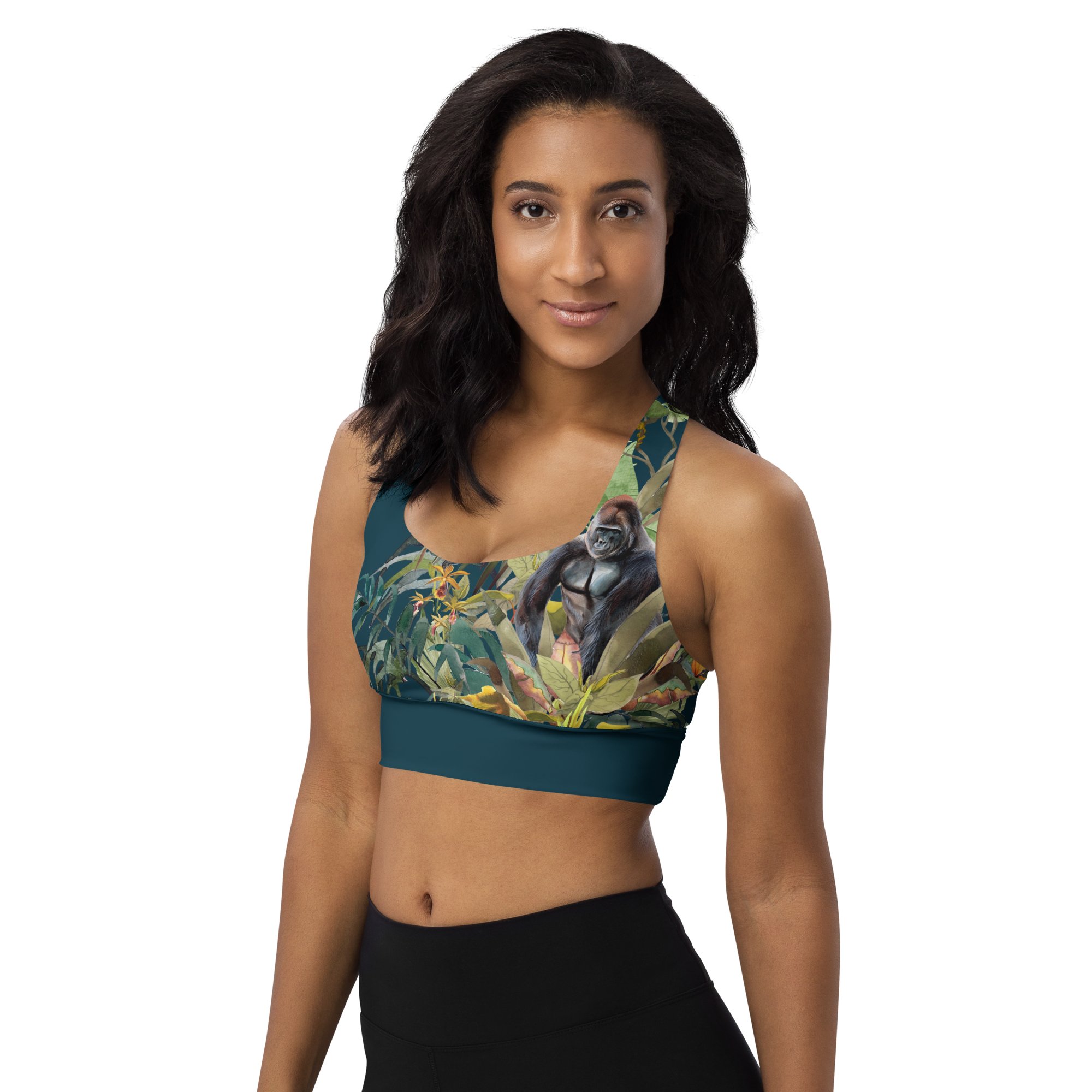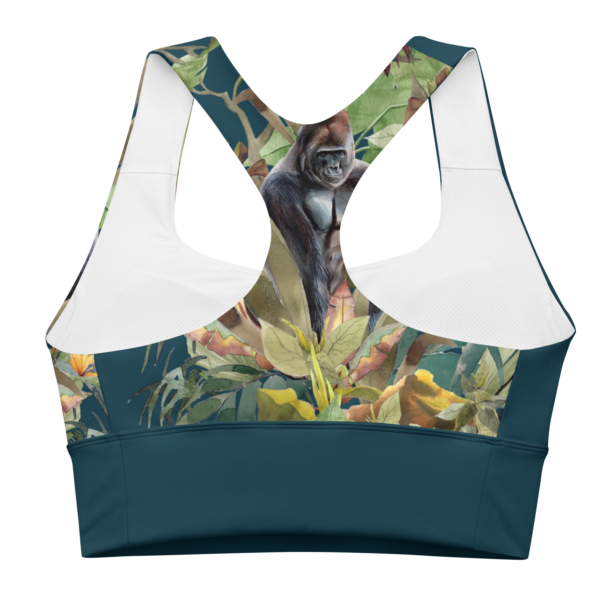 Western Lowland Gorilla Recycled Longline Sports Bra - Blue Whale