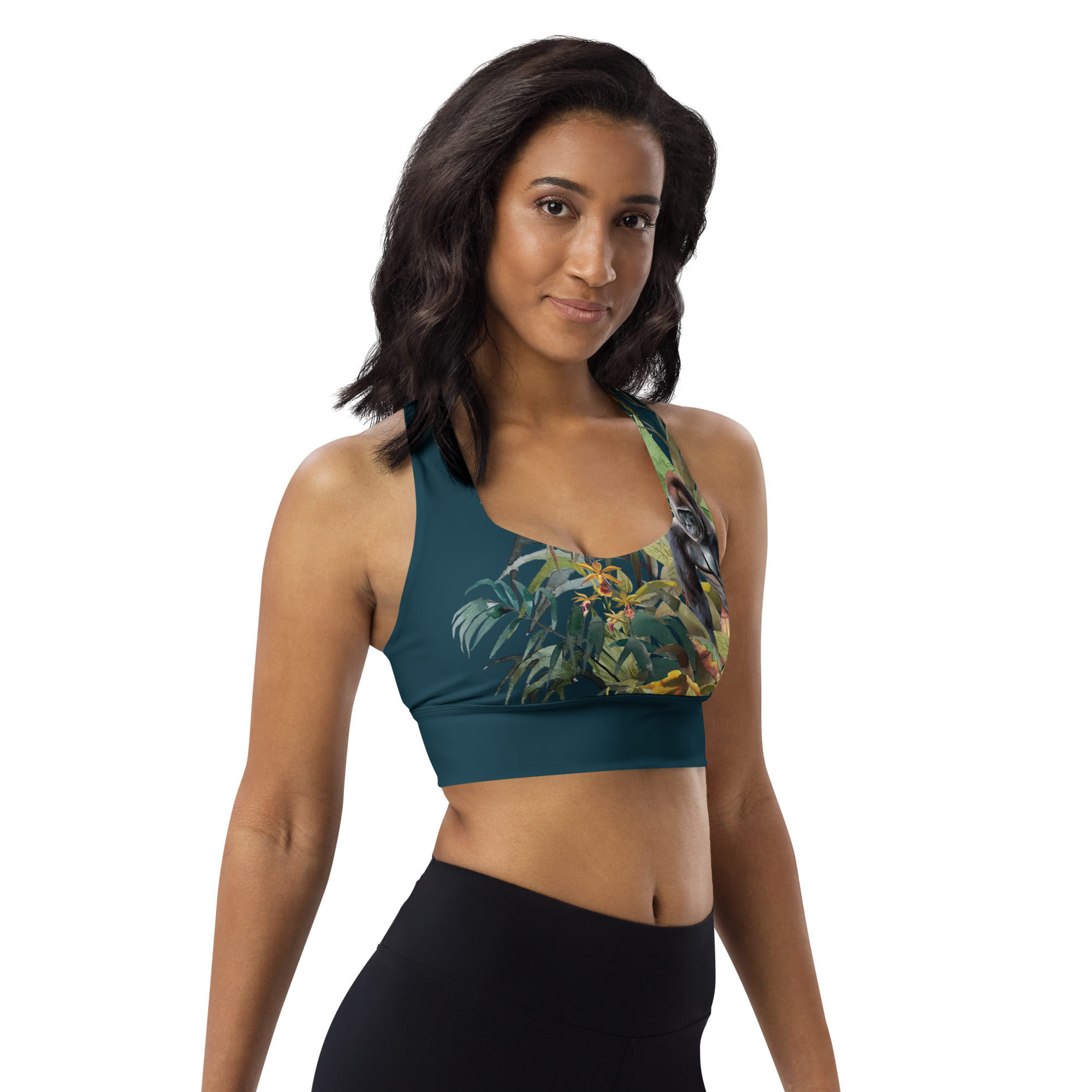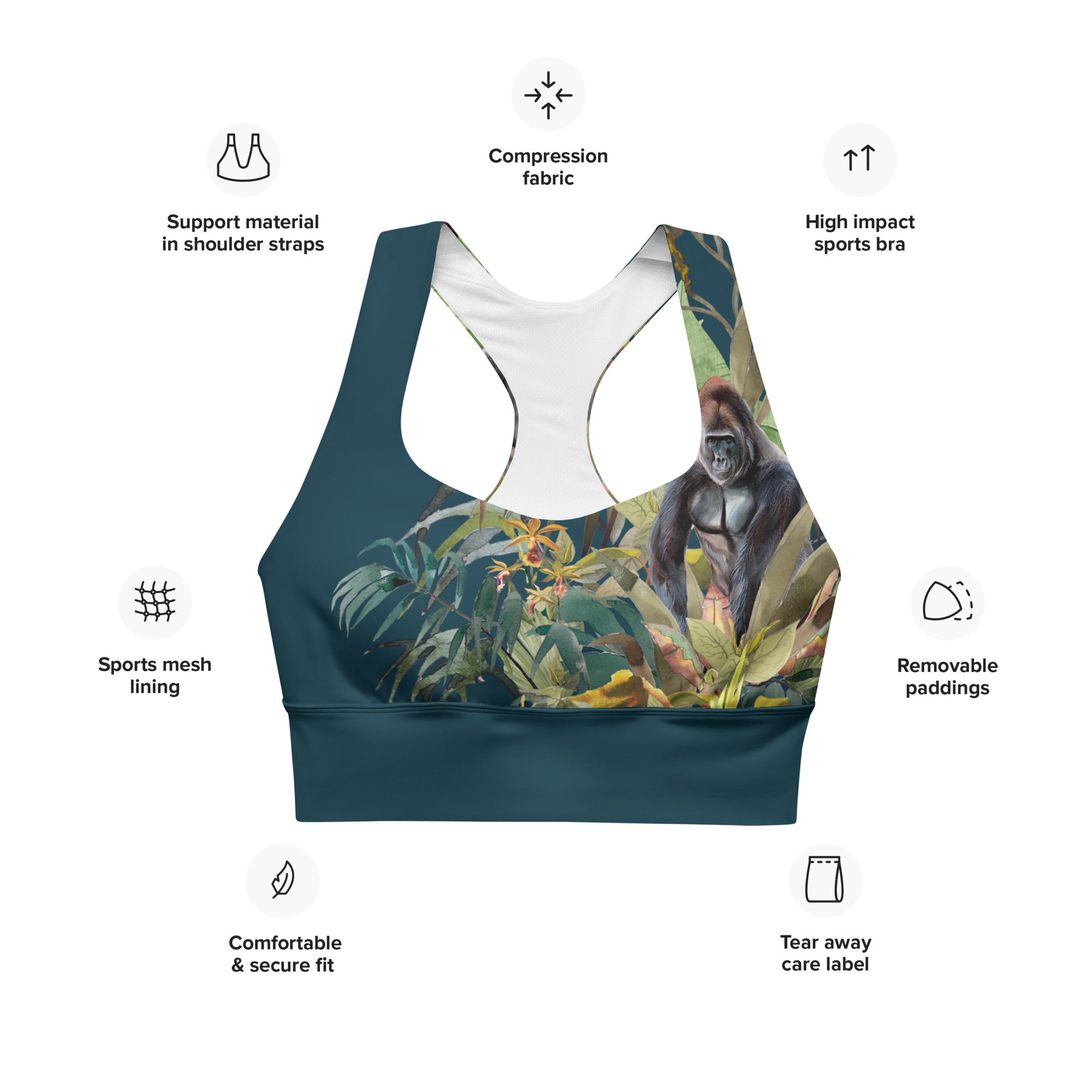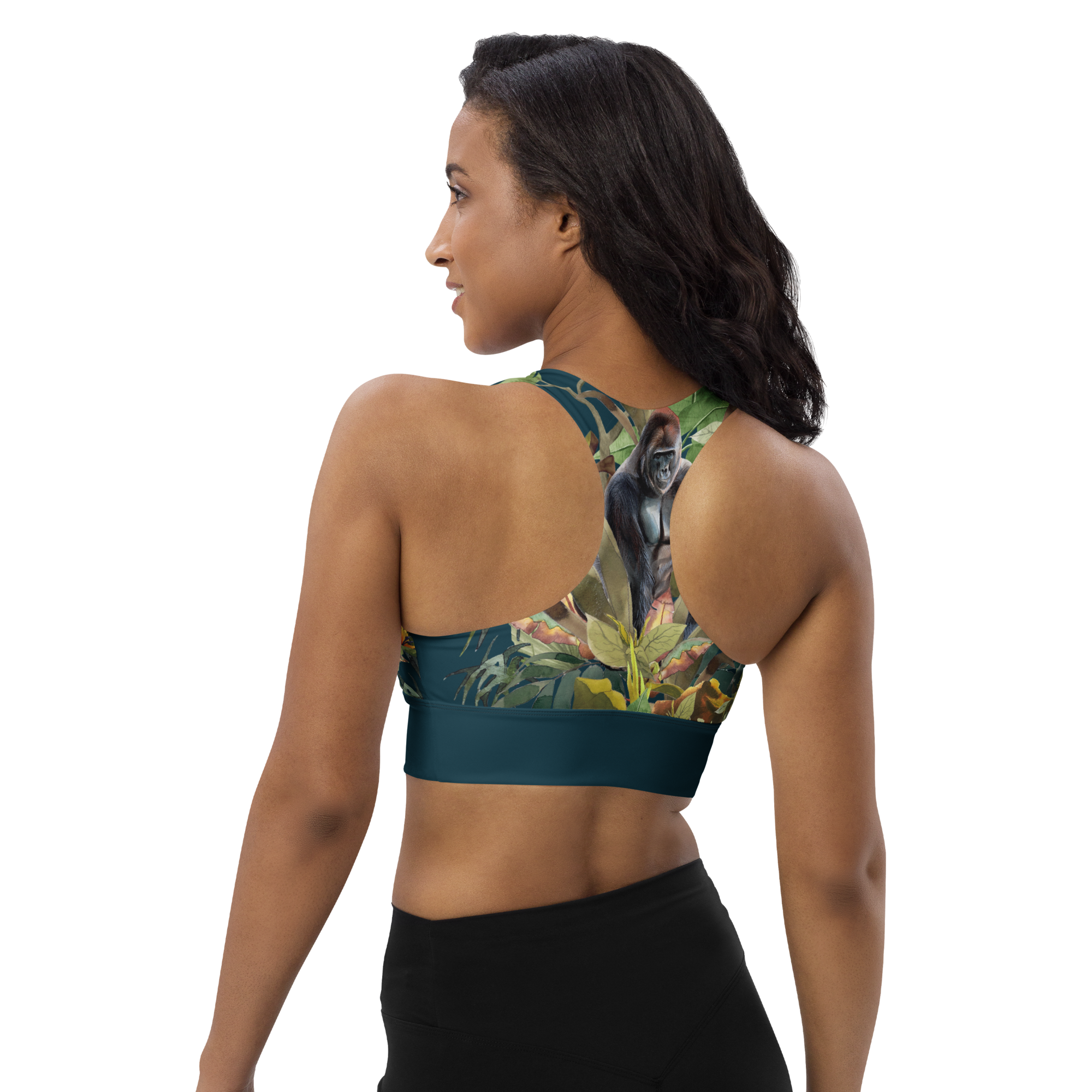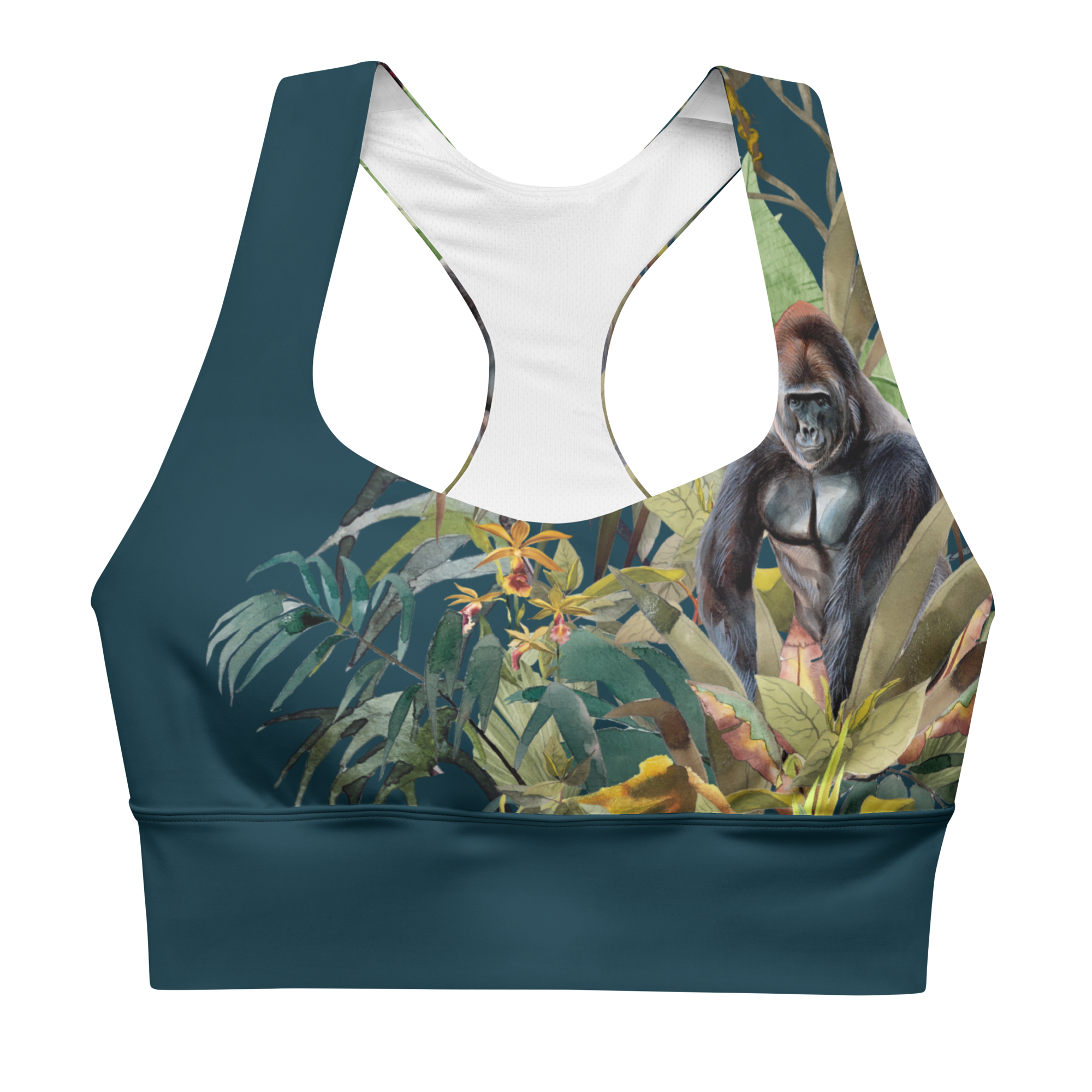 Western Lowland Gorilla Recycled Longline Sports Bra - Blue Whale
