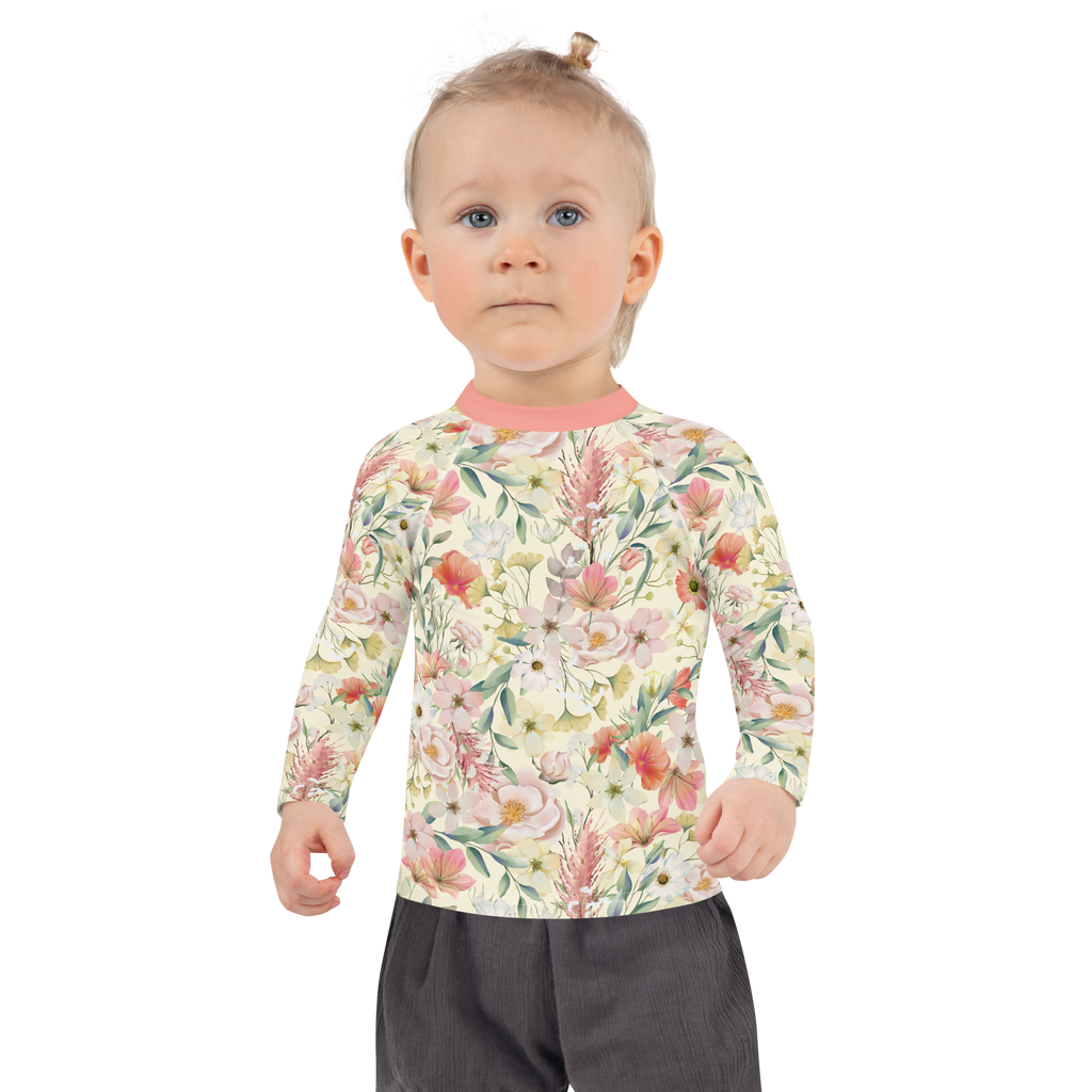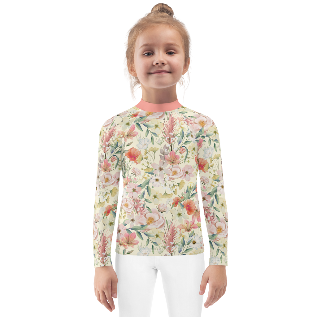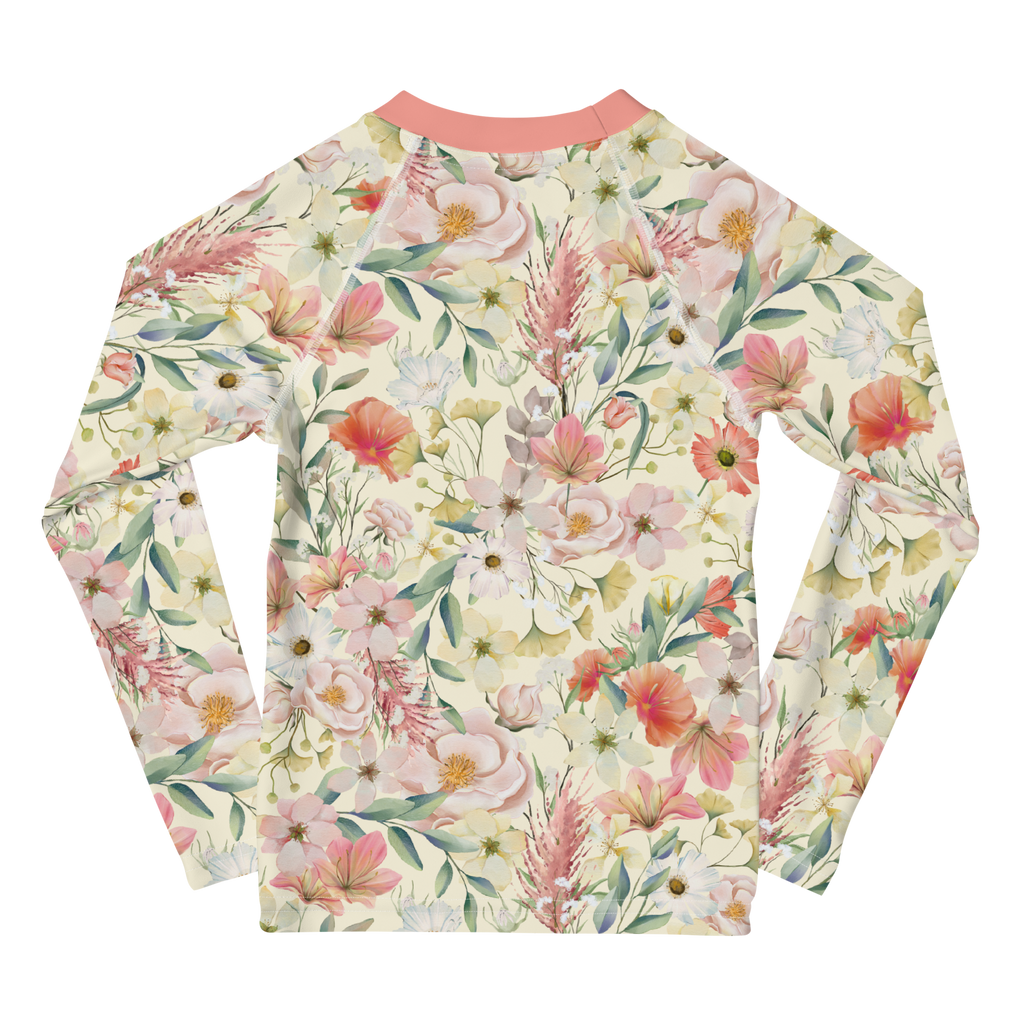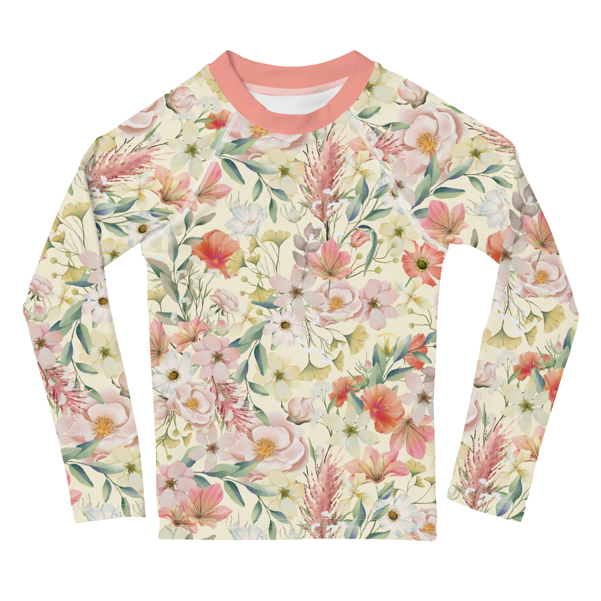 Floristi Kid's Rash Guard - Small Print - Apricot White/Mona Lisa Trim