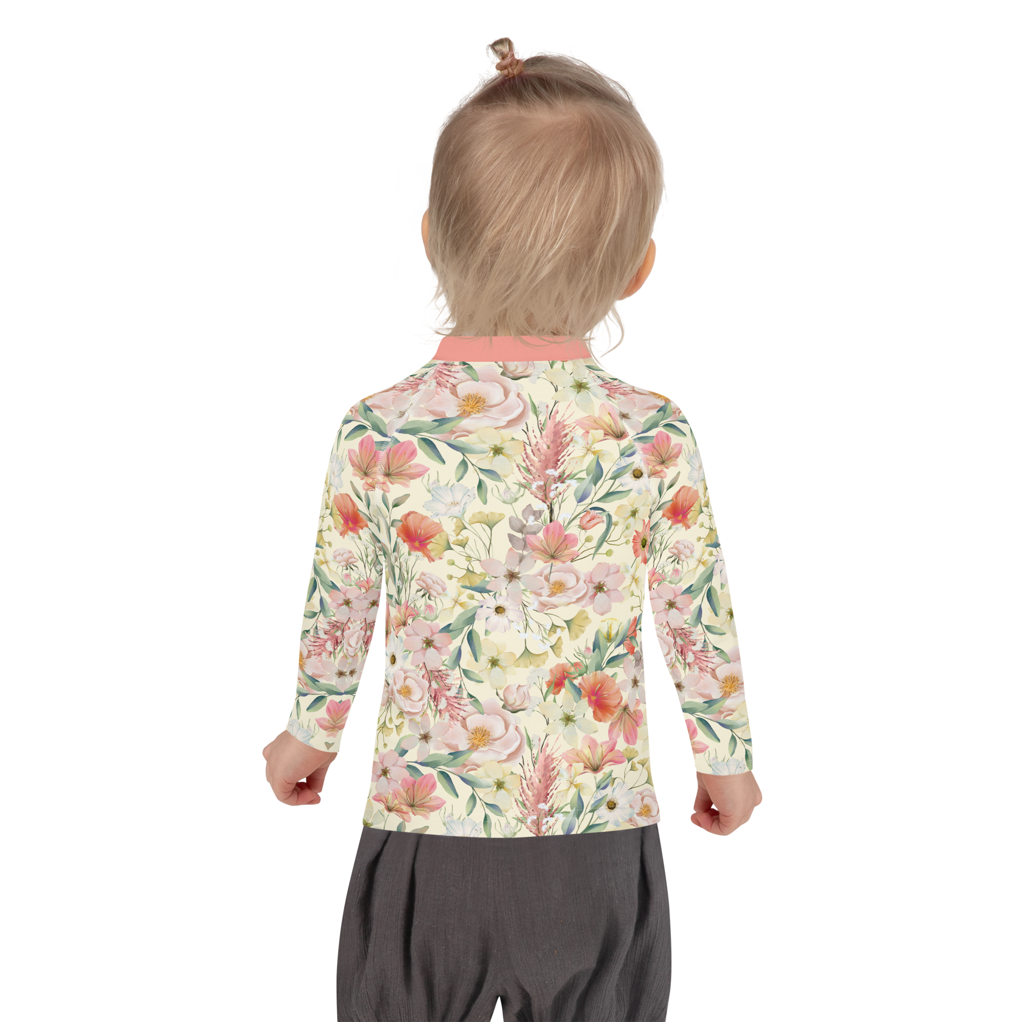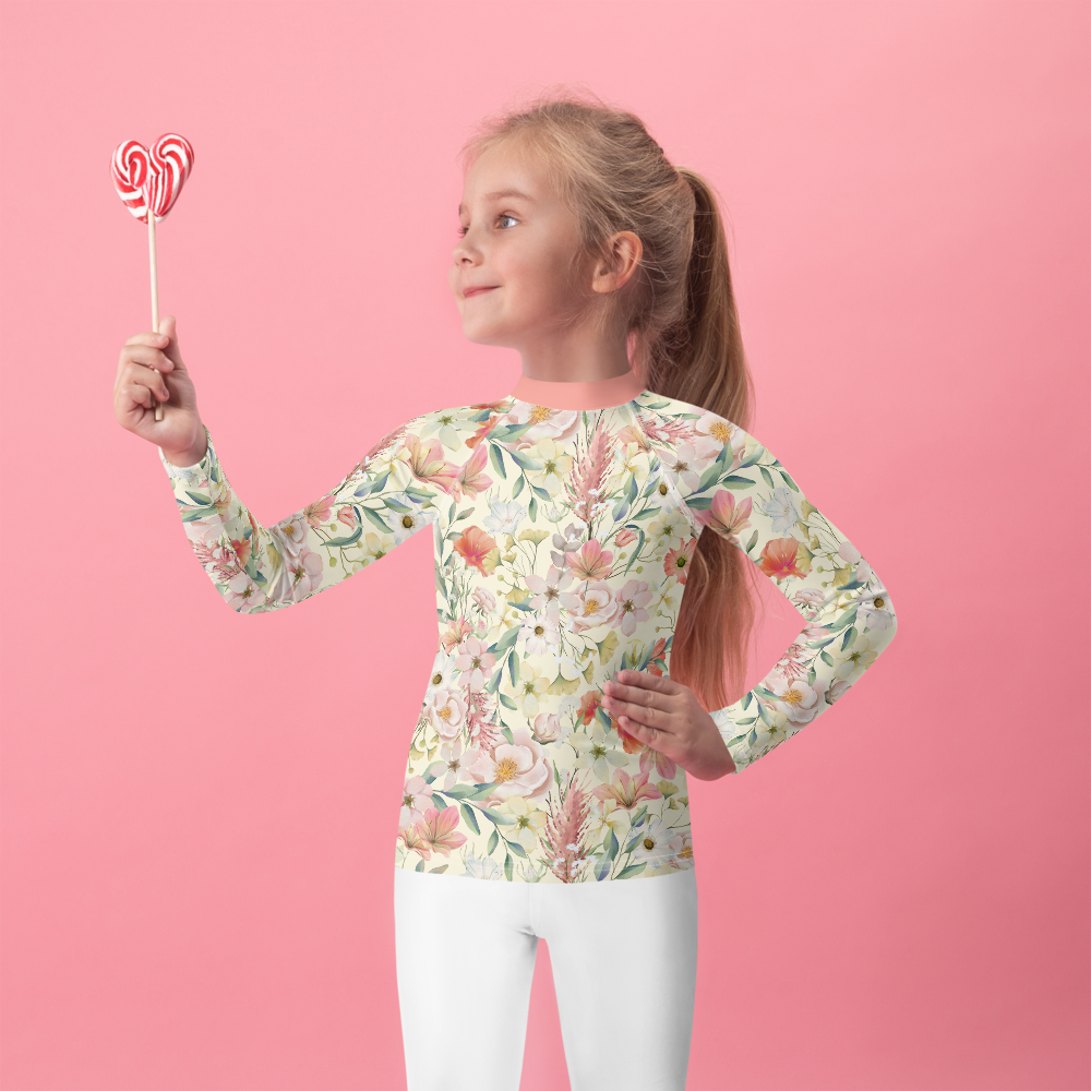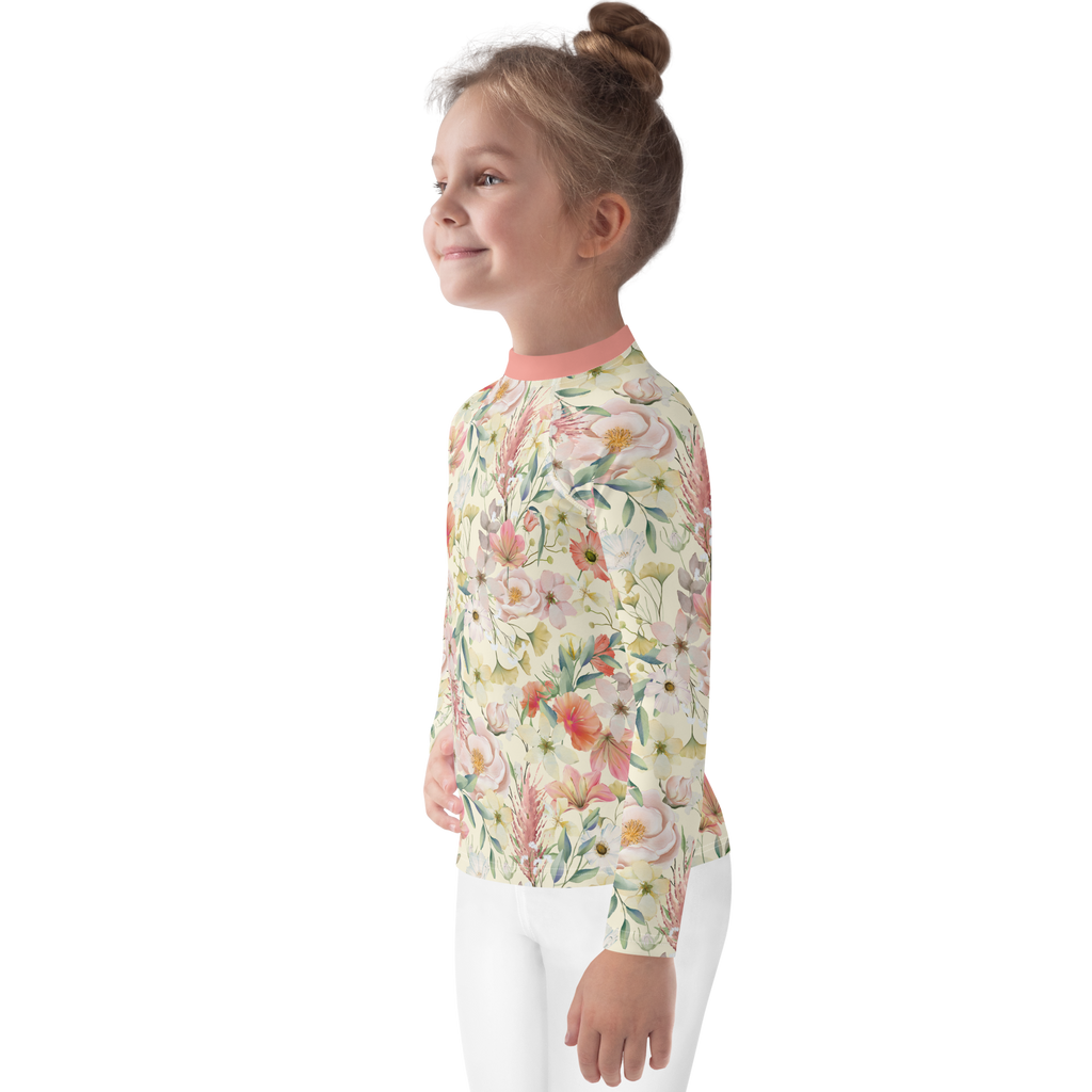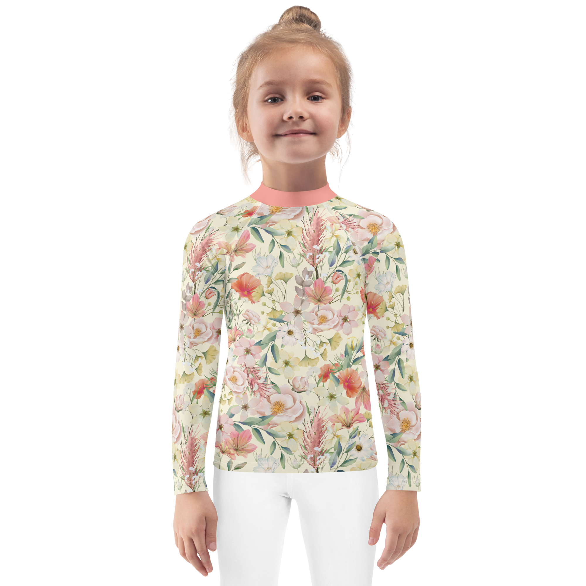 Floristi Kid's Rash Guard - Small Print - Apricot White/Mona Lisa Trim