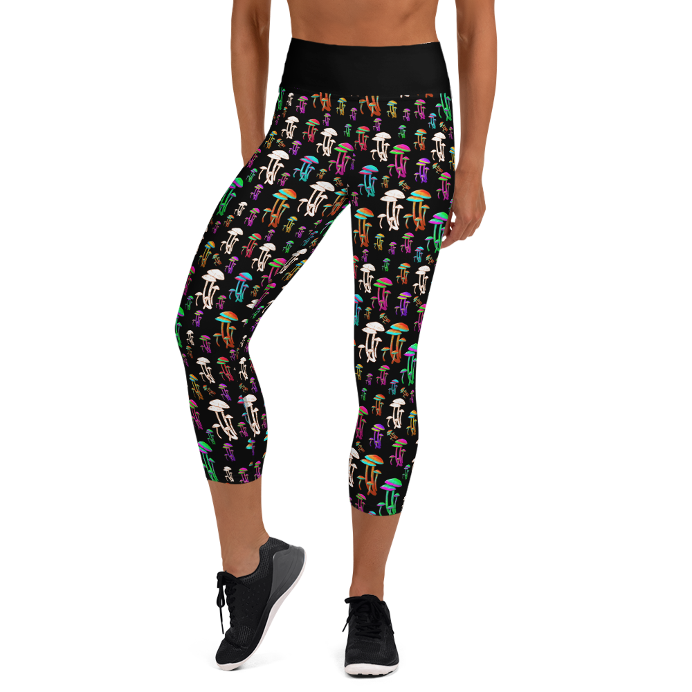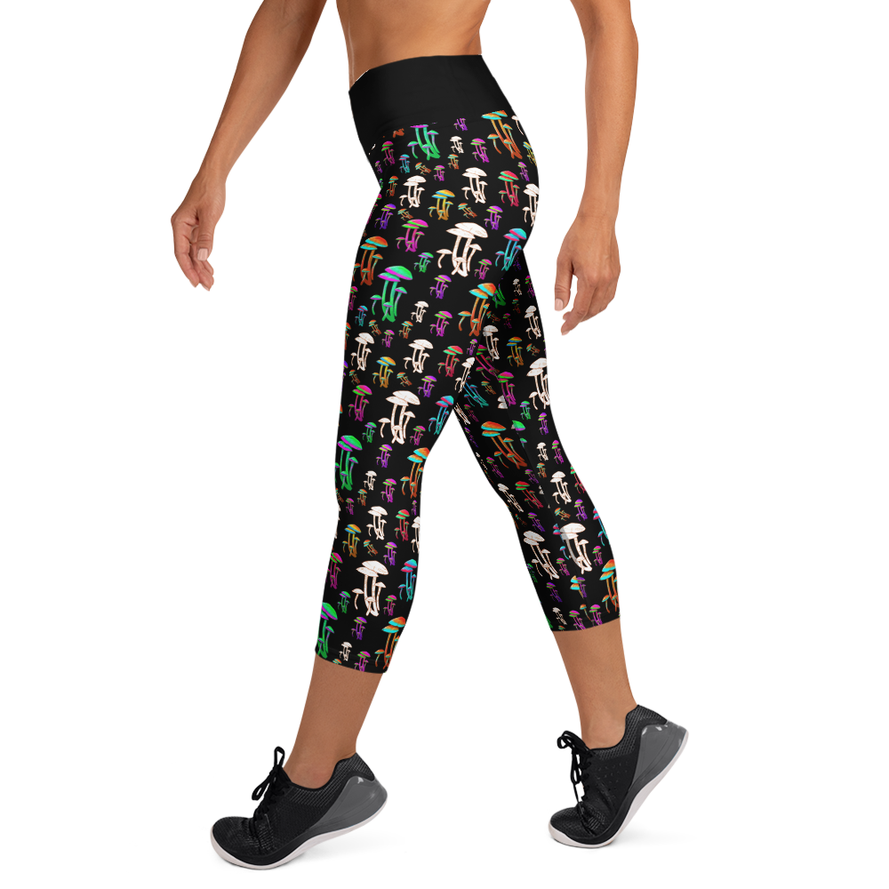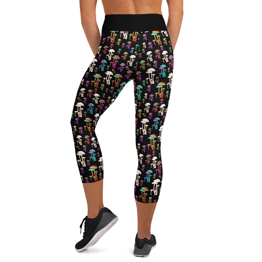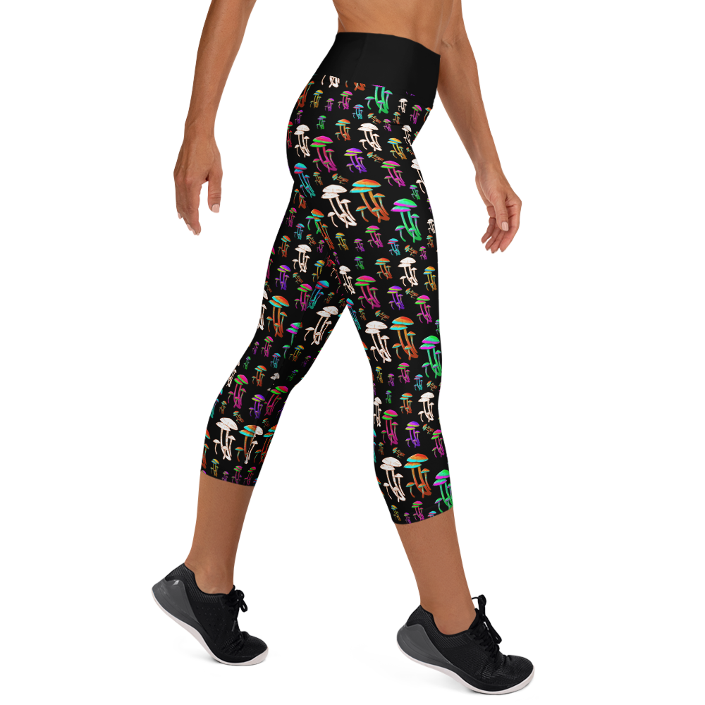 Fungus Among Us Yoga Capri Leggings - Black/Black Waistband