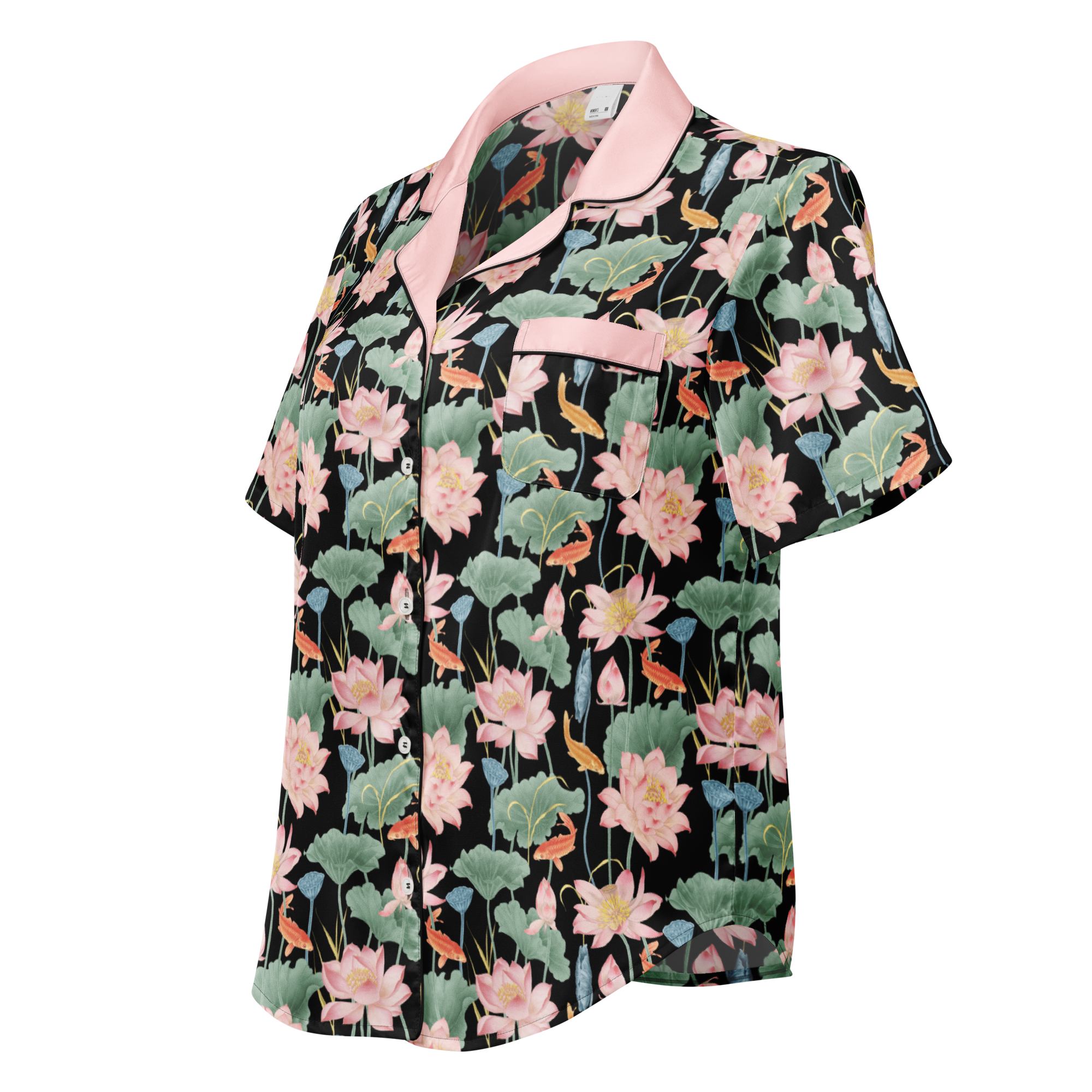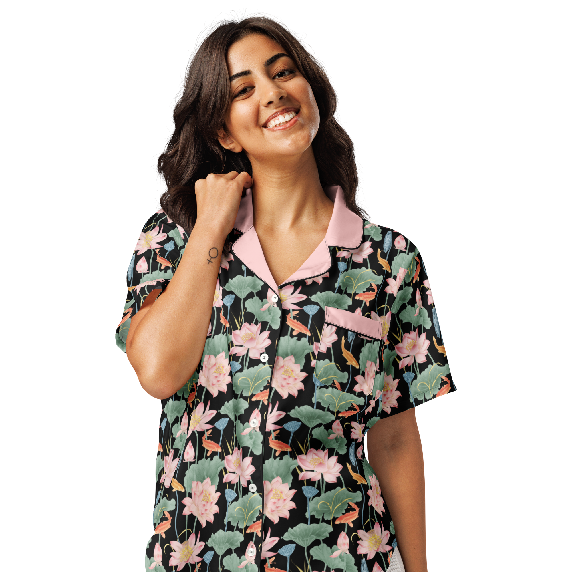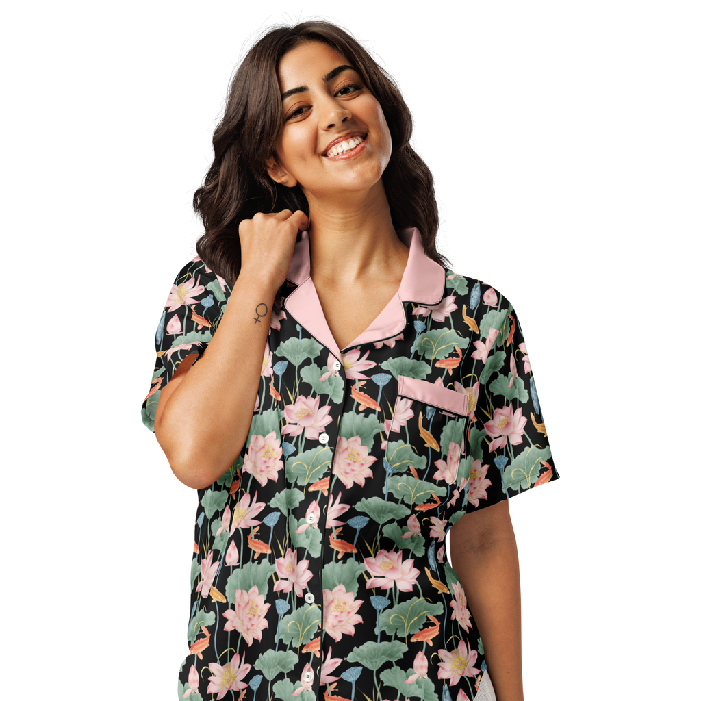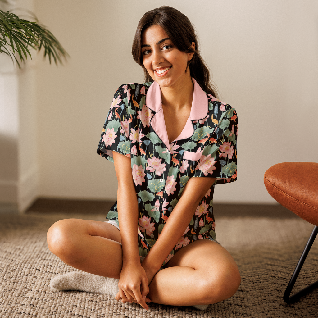 Lotus Luxe Women’s Short Sleeve Pajama Top - Cosmos Trim