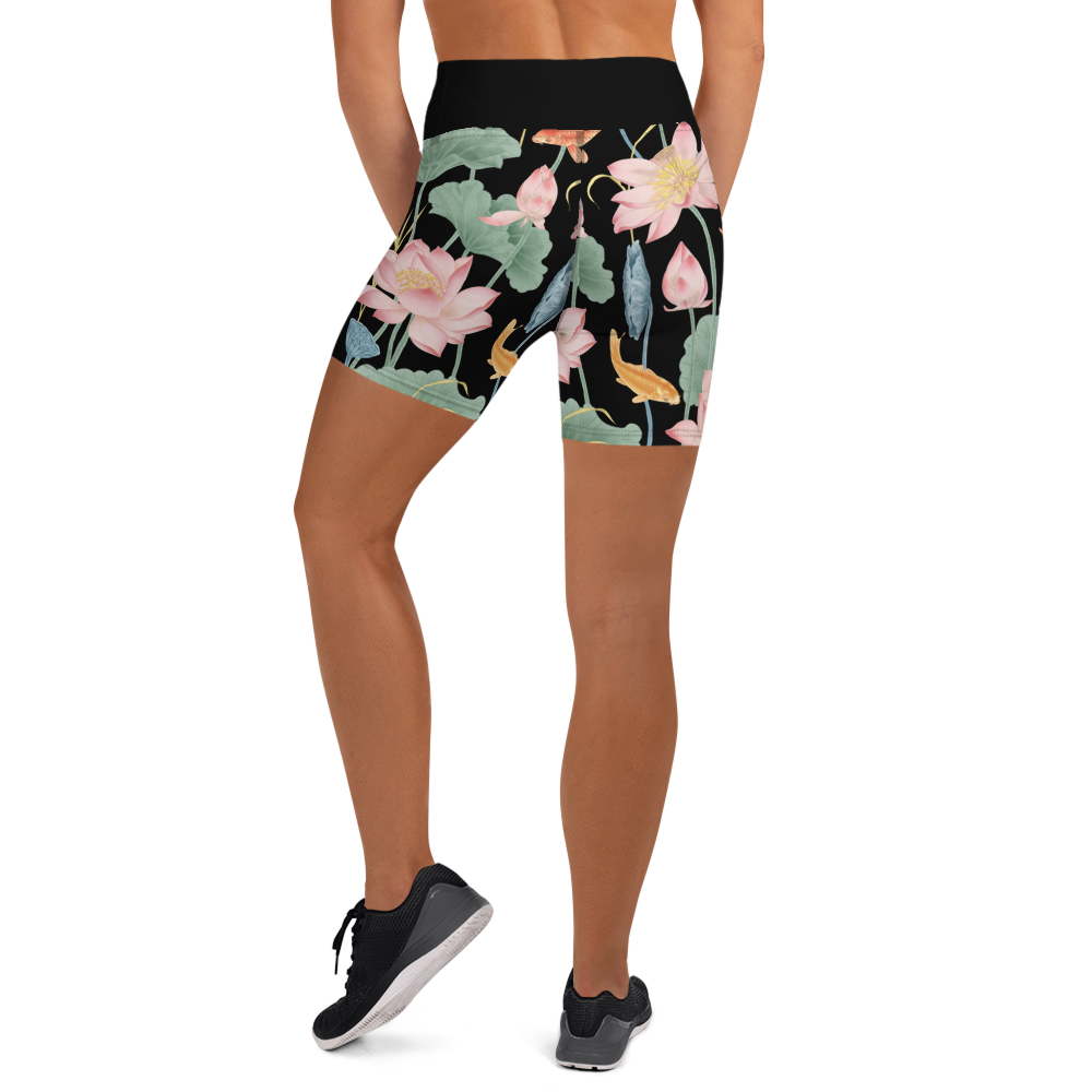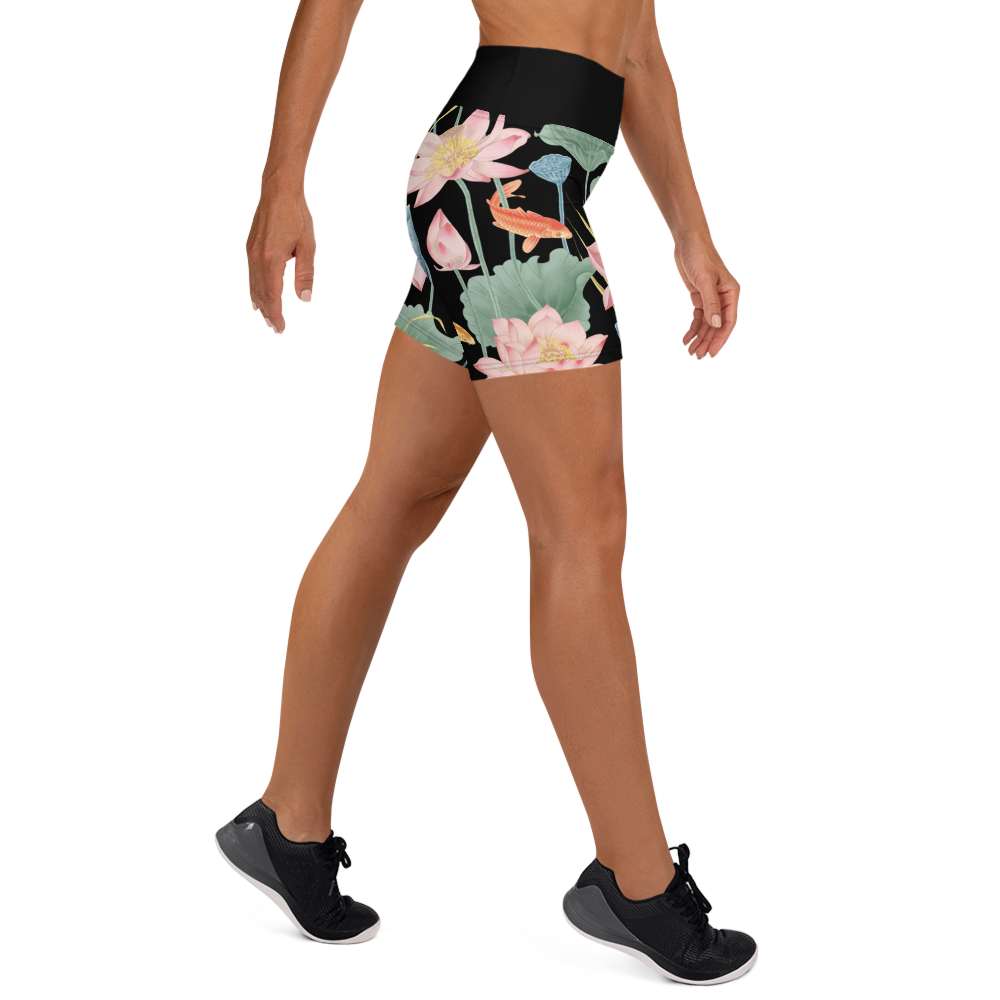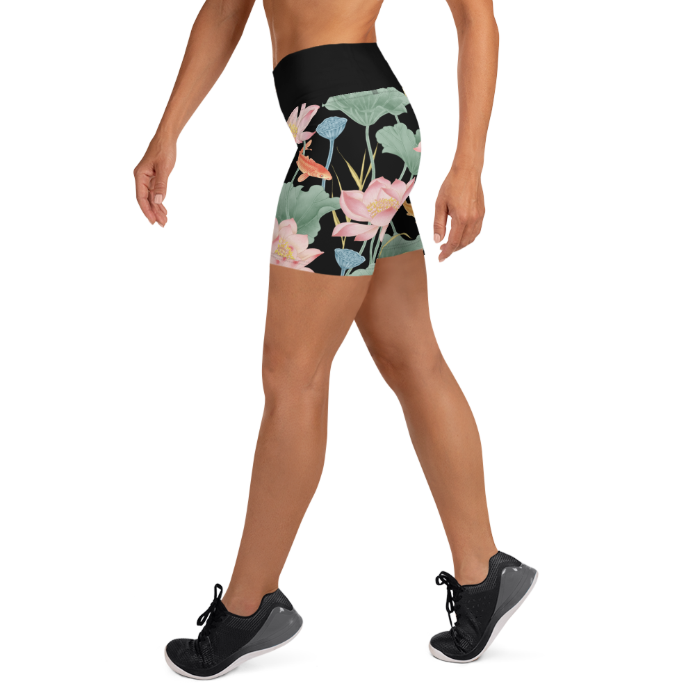 Lotus Luxe Yoga Shorts - Large Print - Black/Black Waistband