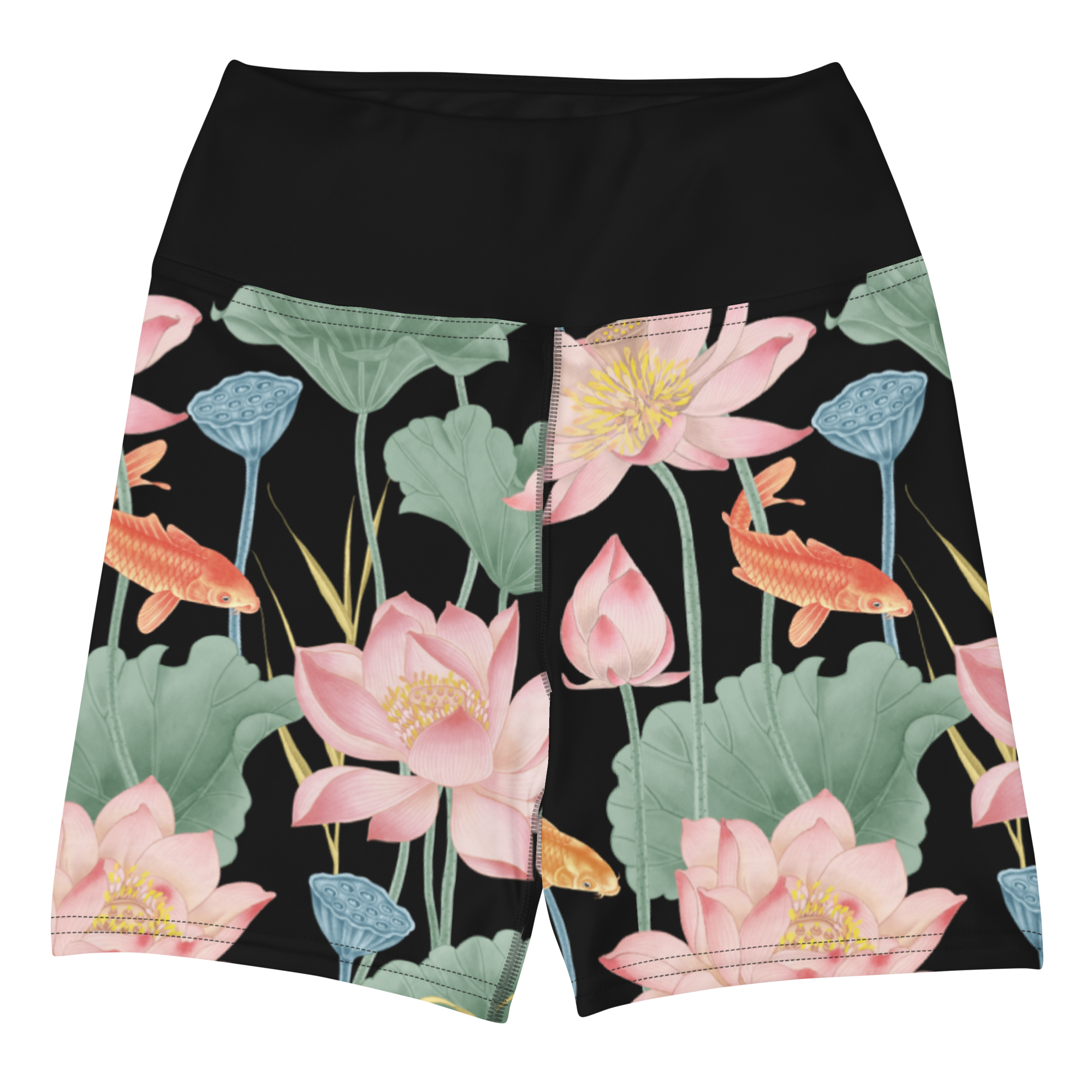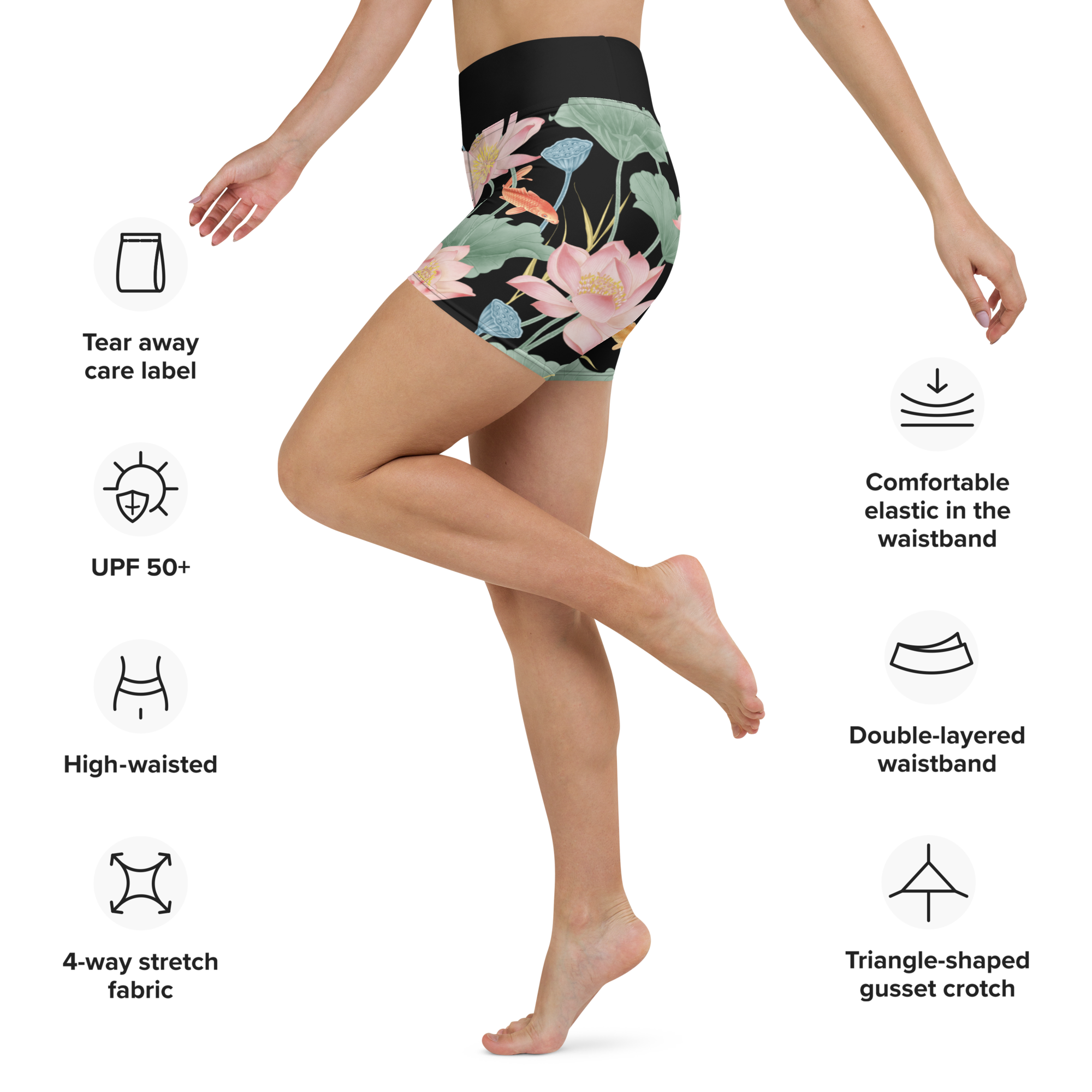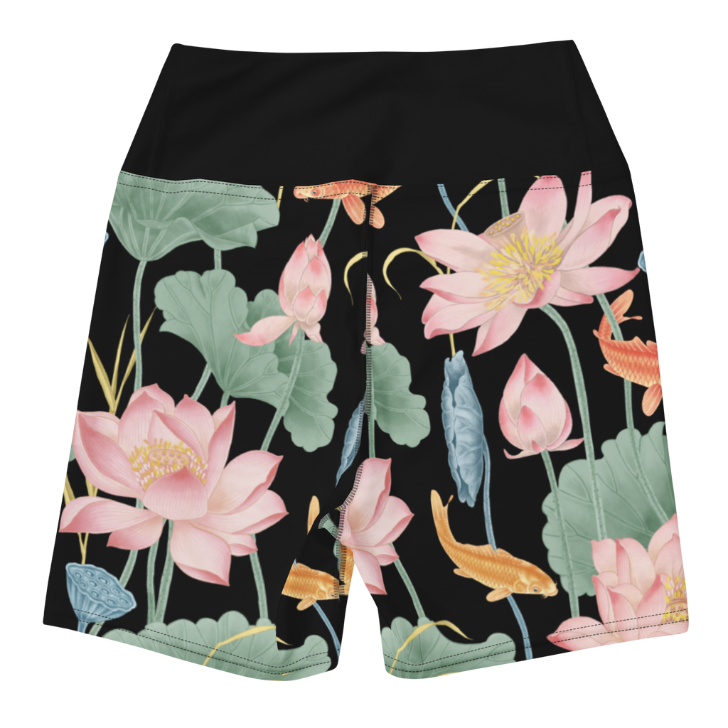 Lotus Luxe Yoga Shorts - Large Print - Black/Black Waistband