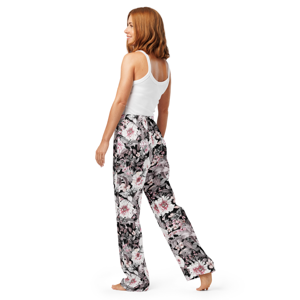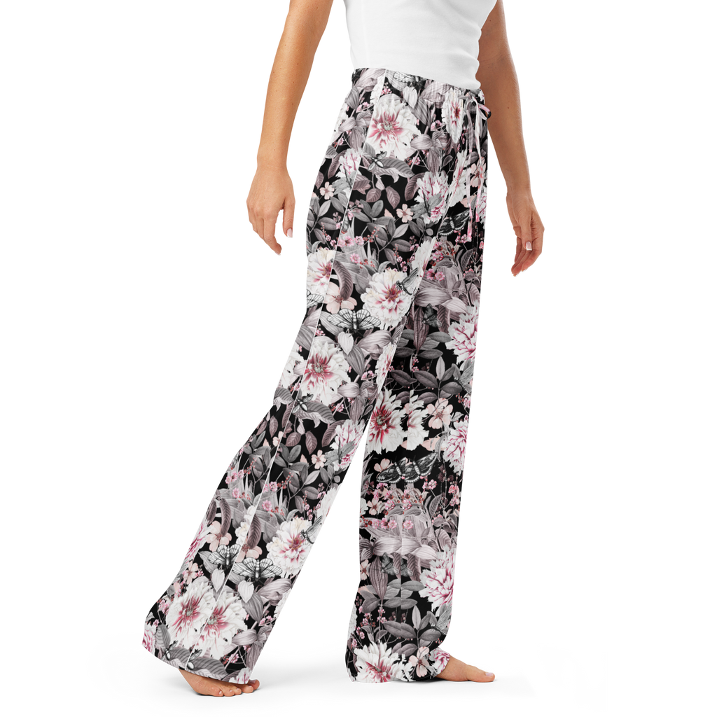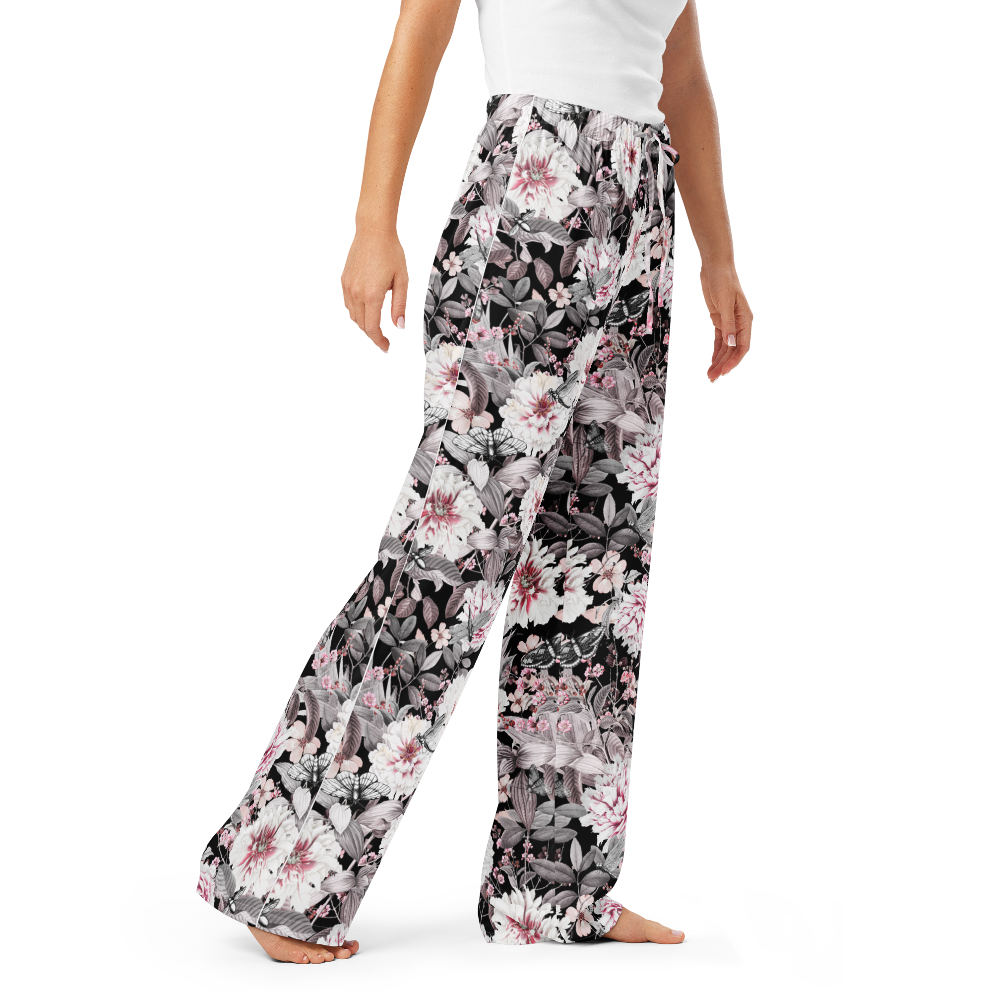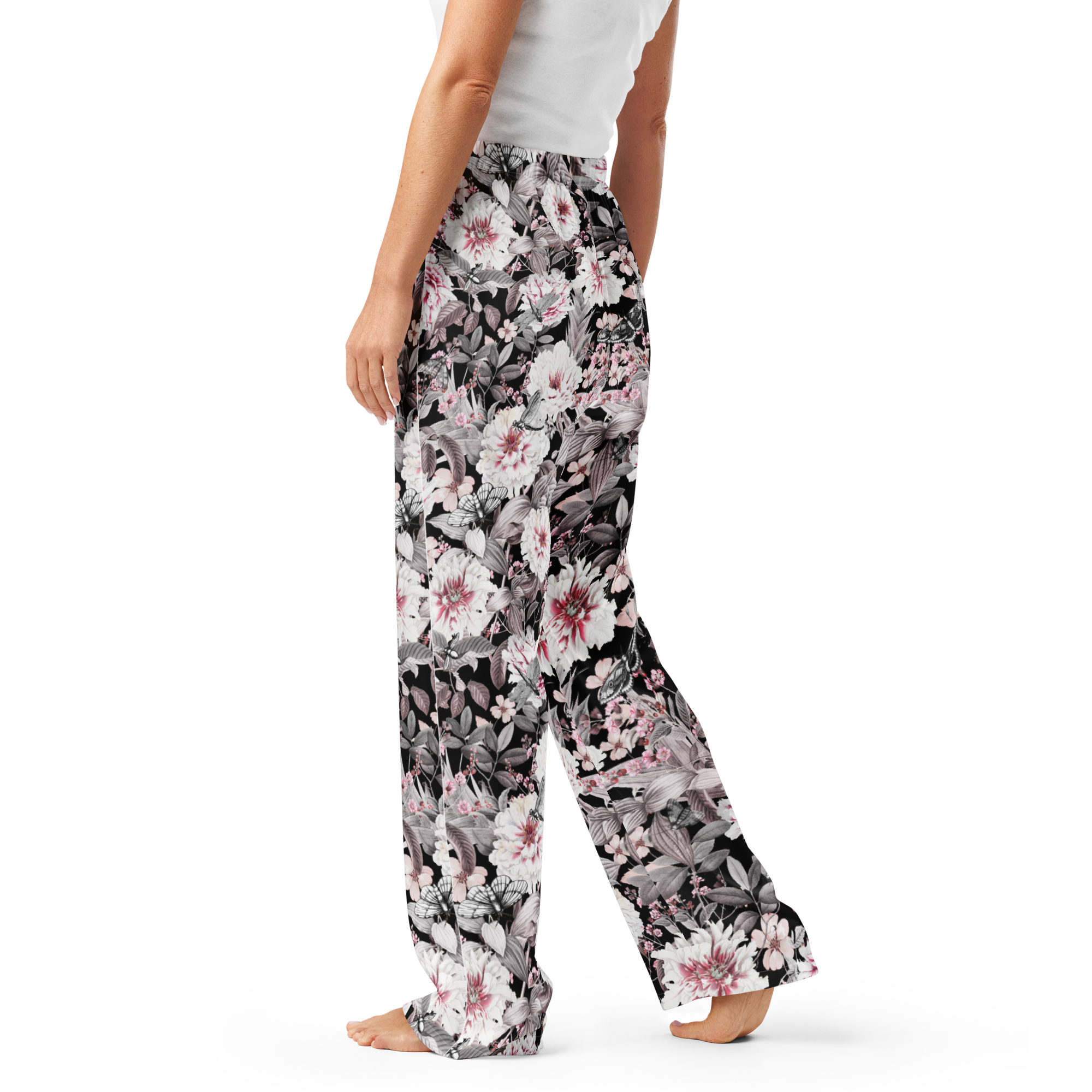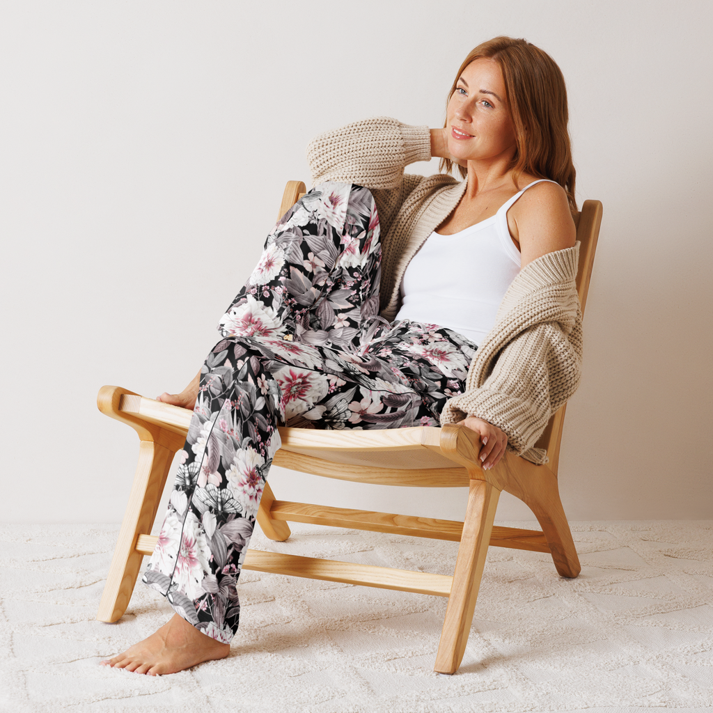 Serenity Women’s Pajama Pants (Larger Print) - Black/Black or White Piping