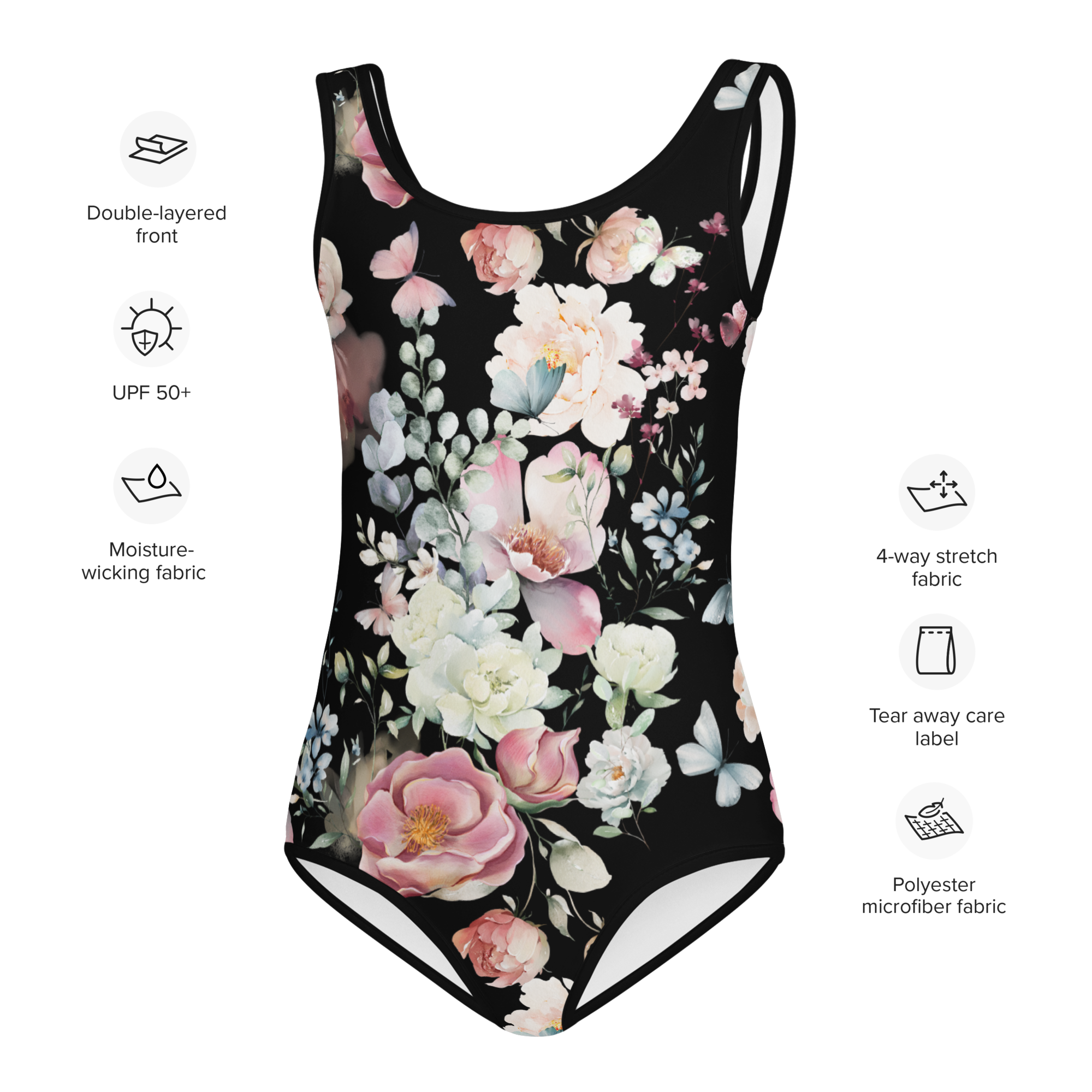 This girls' swimsuit has it all - comfortable fit, elastic fabric, and a deep-colored print that won't fade in the sun and water. The double-layered front, bias binding, and 38–40 UPF ensure that the kids can be their active selves, and the parents don't have to worry about any wardrobe malfunctions.