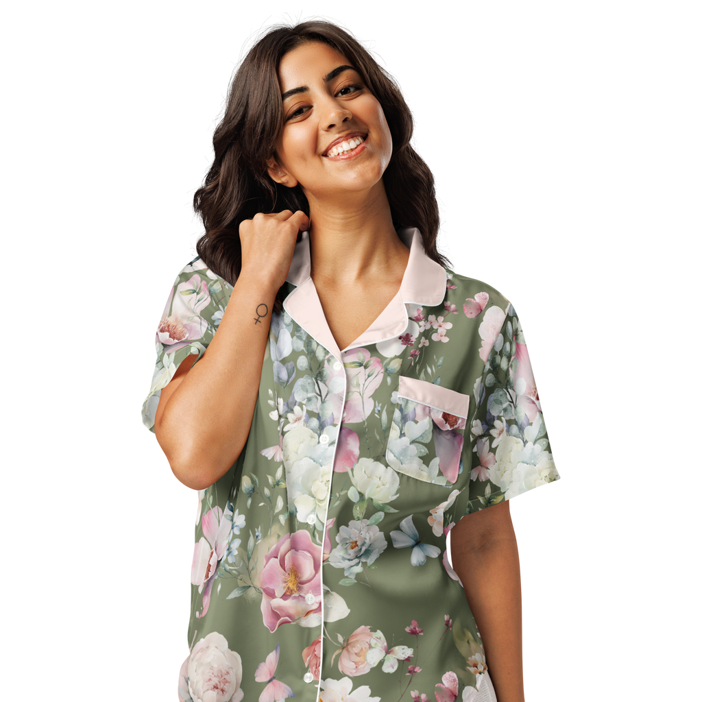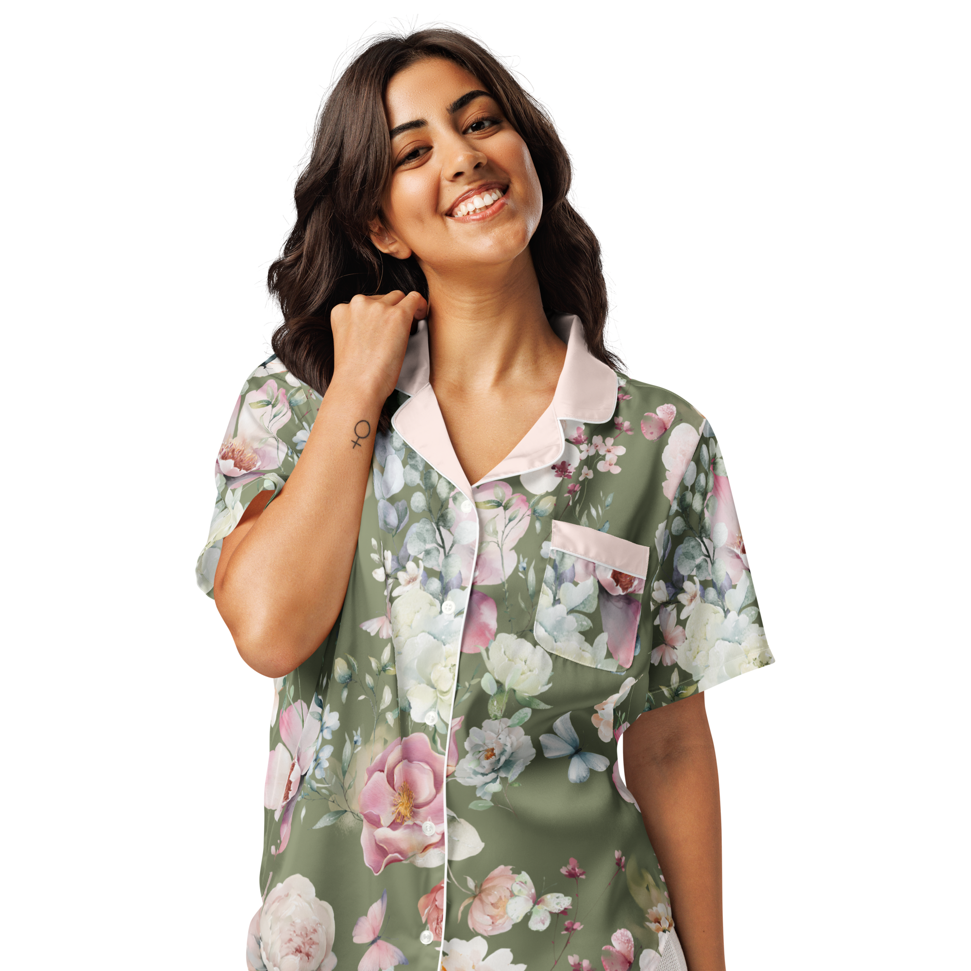 Spring Serenade Women’s Short Sleeve Pajama Top - Finch/Wisp Pink Details/White Piping