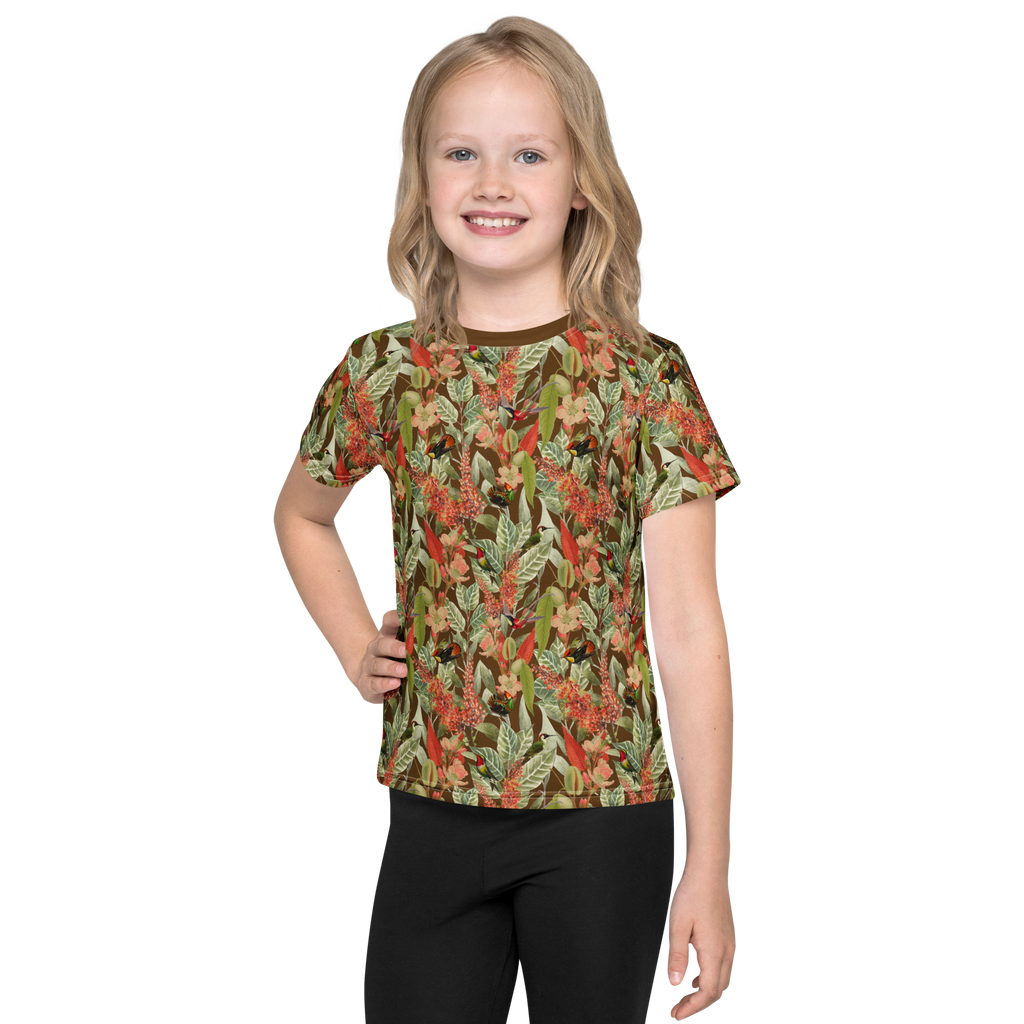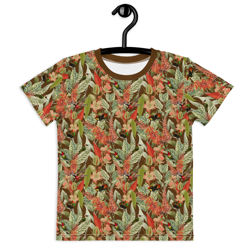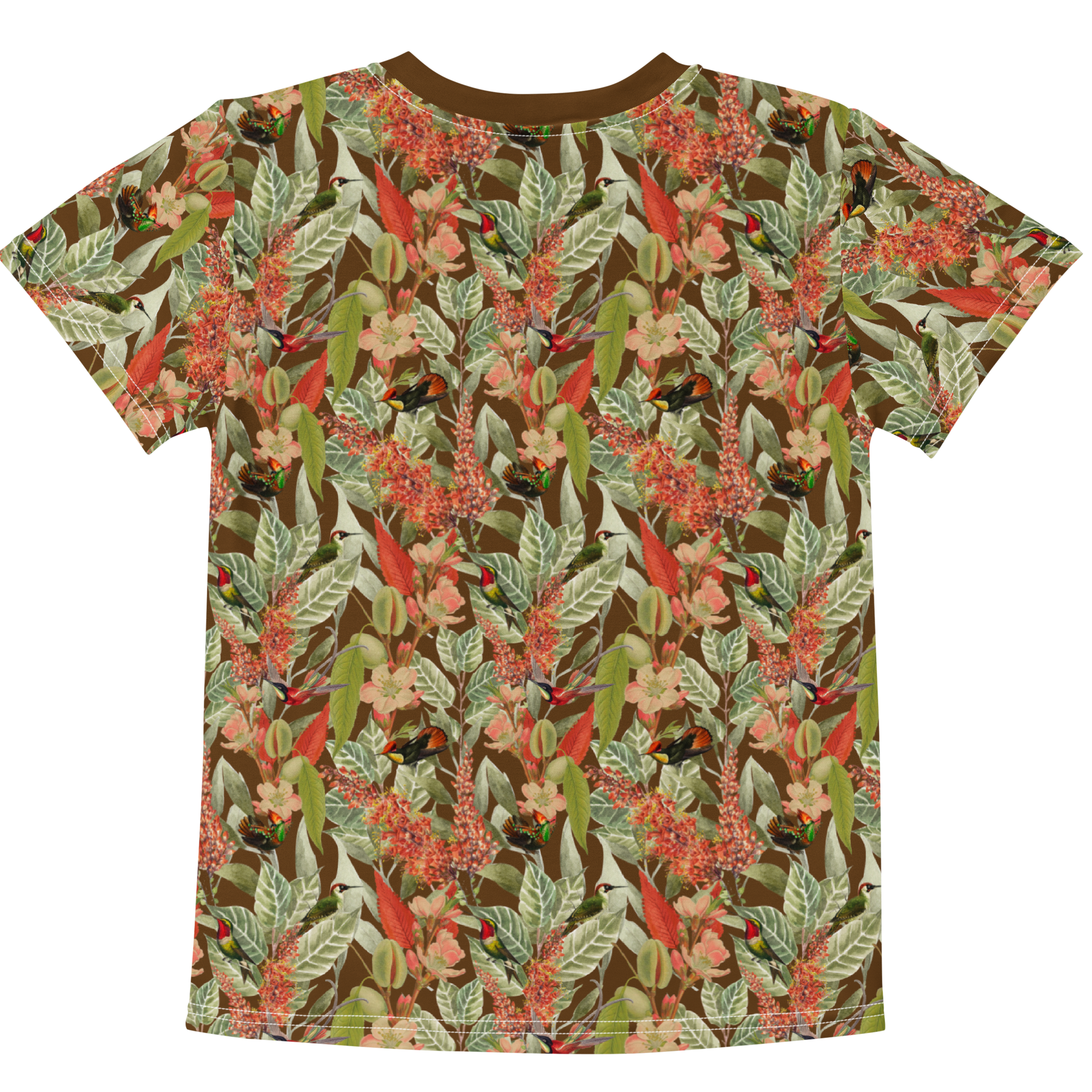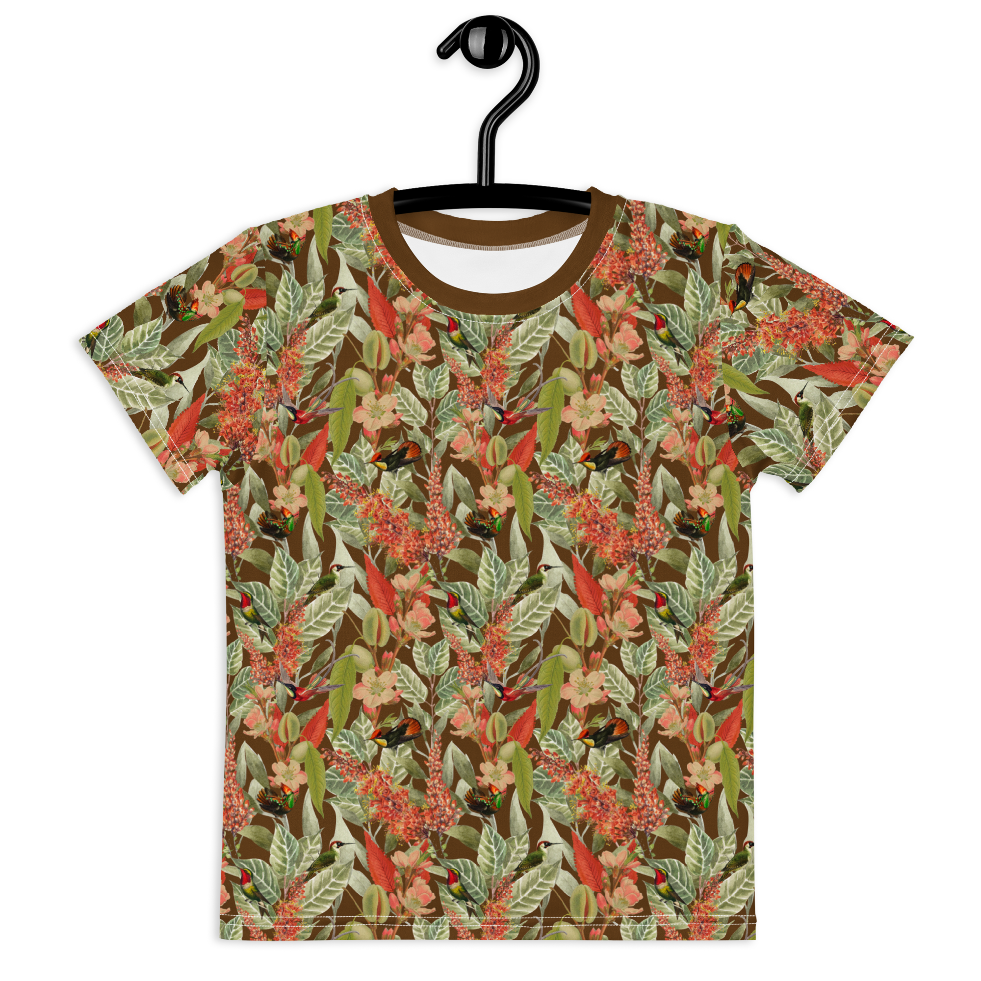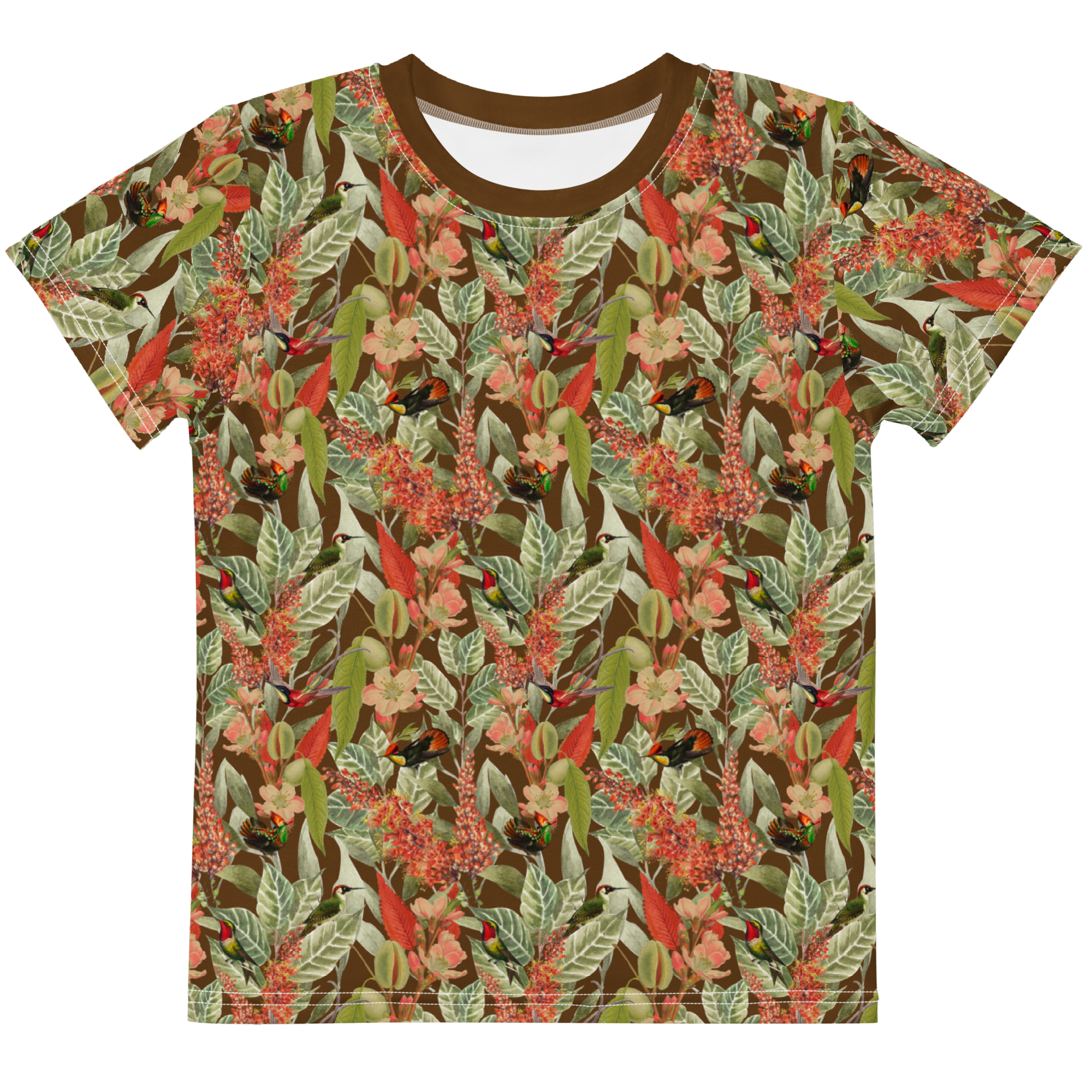 Vintage Garden Kid's Crew Neck T-shirt (with Birds) - Small Print - Brown