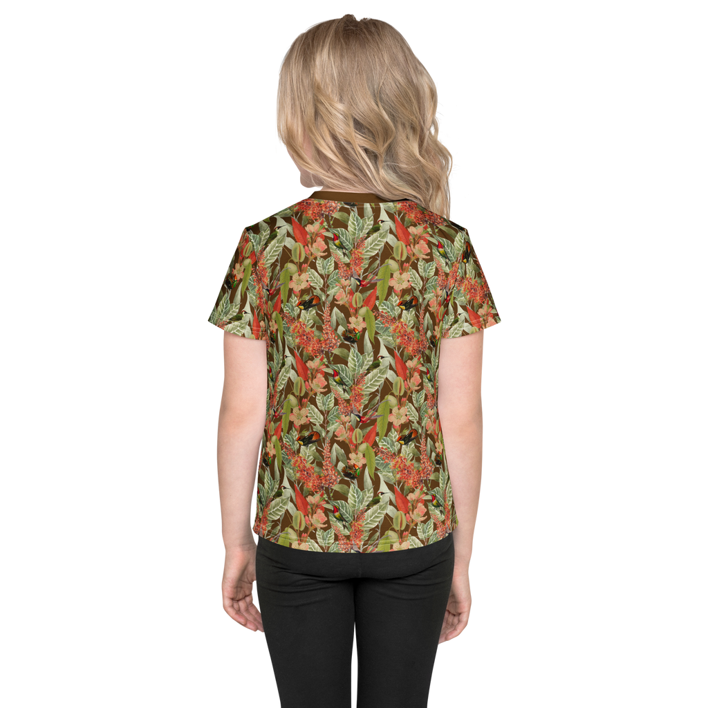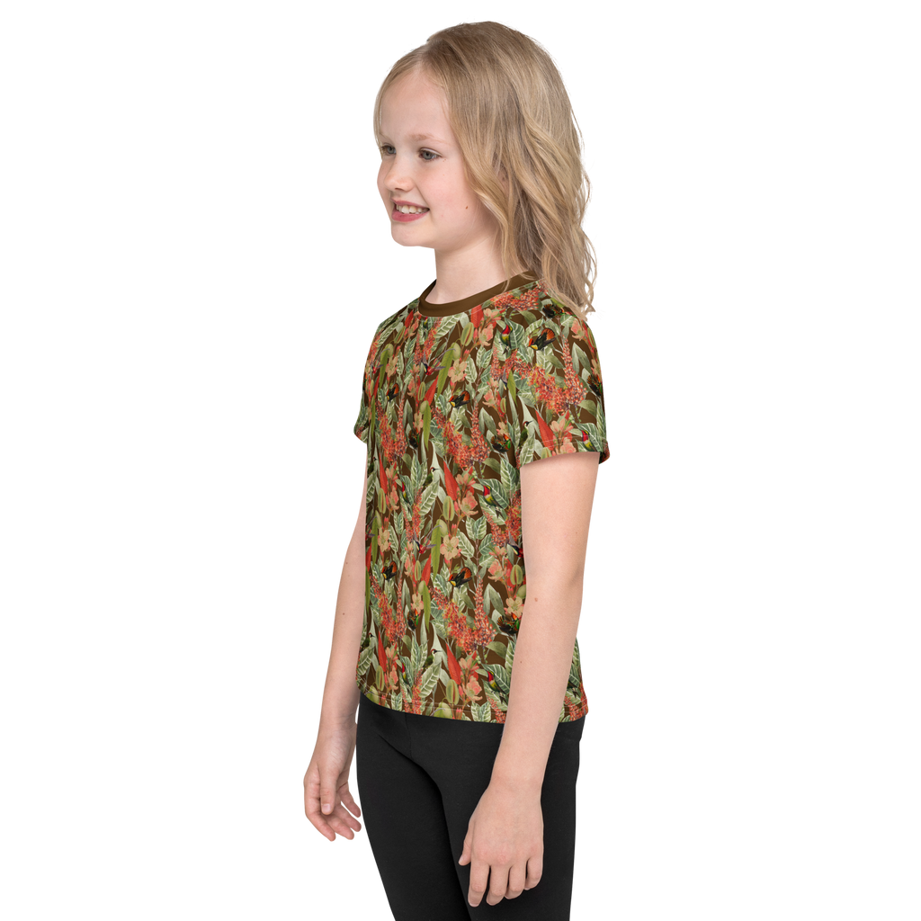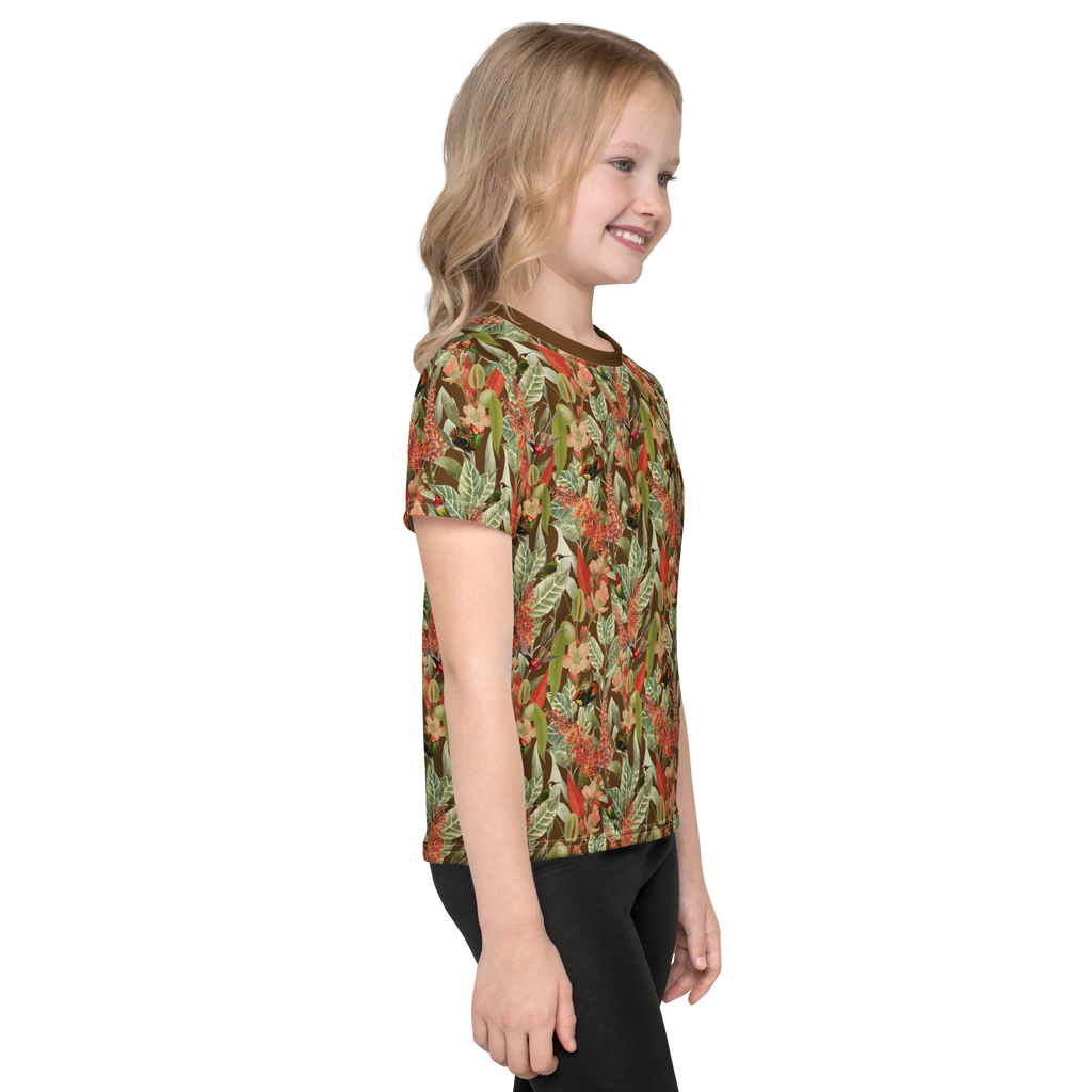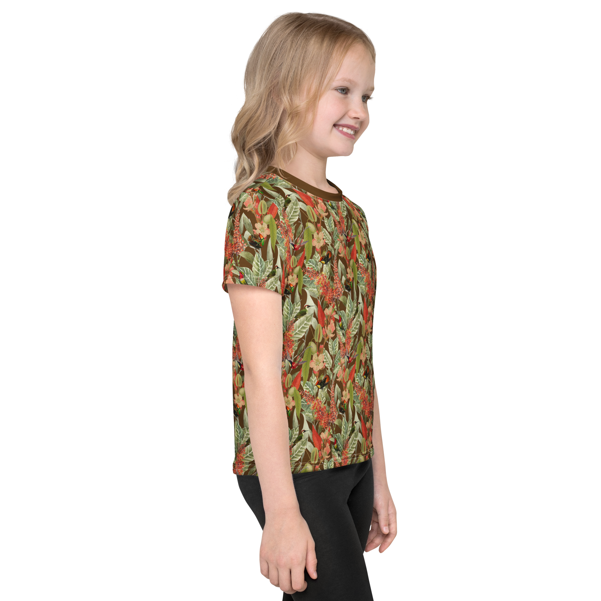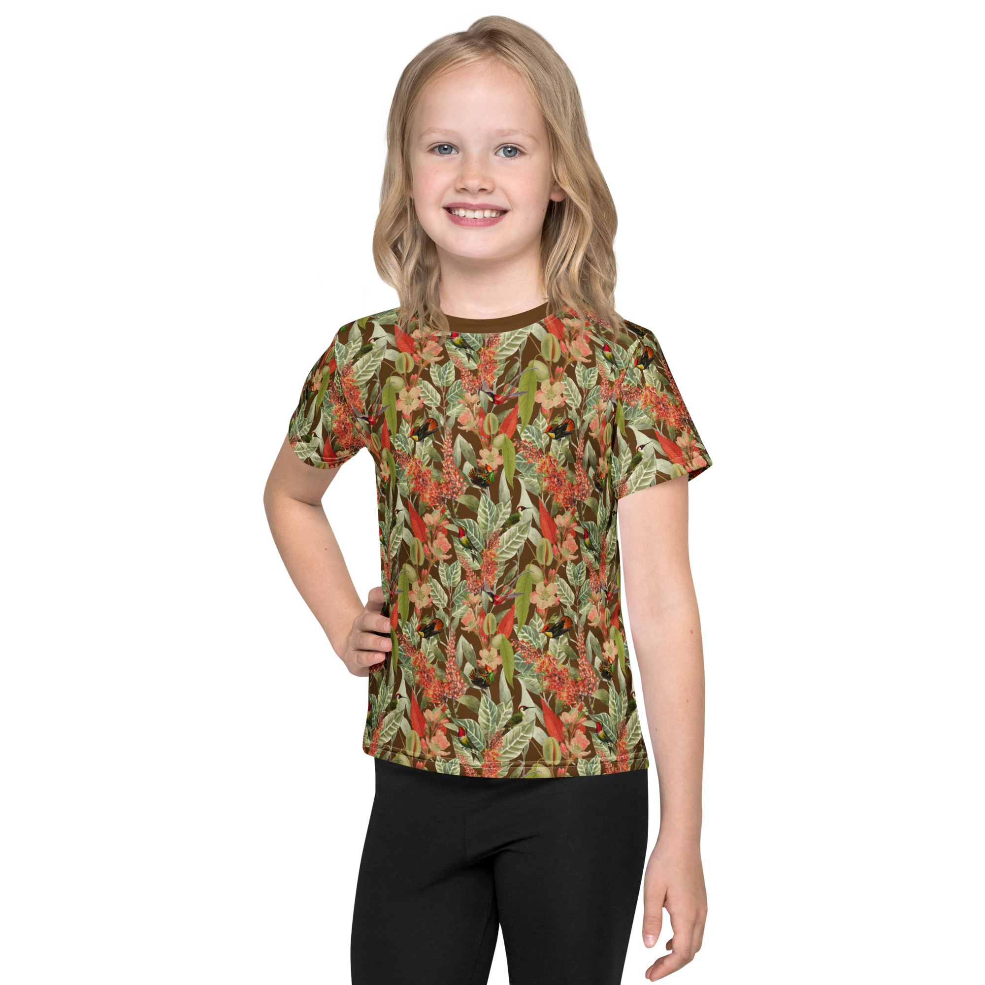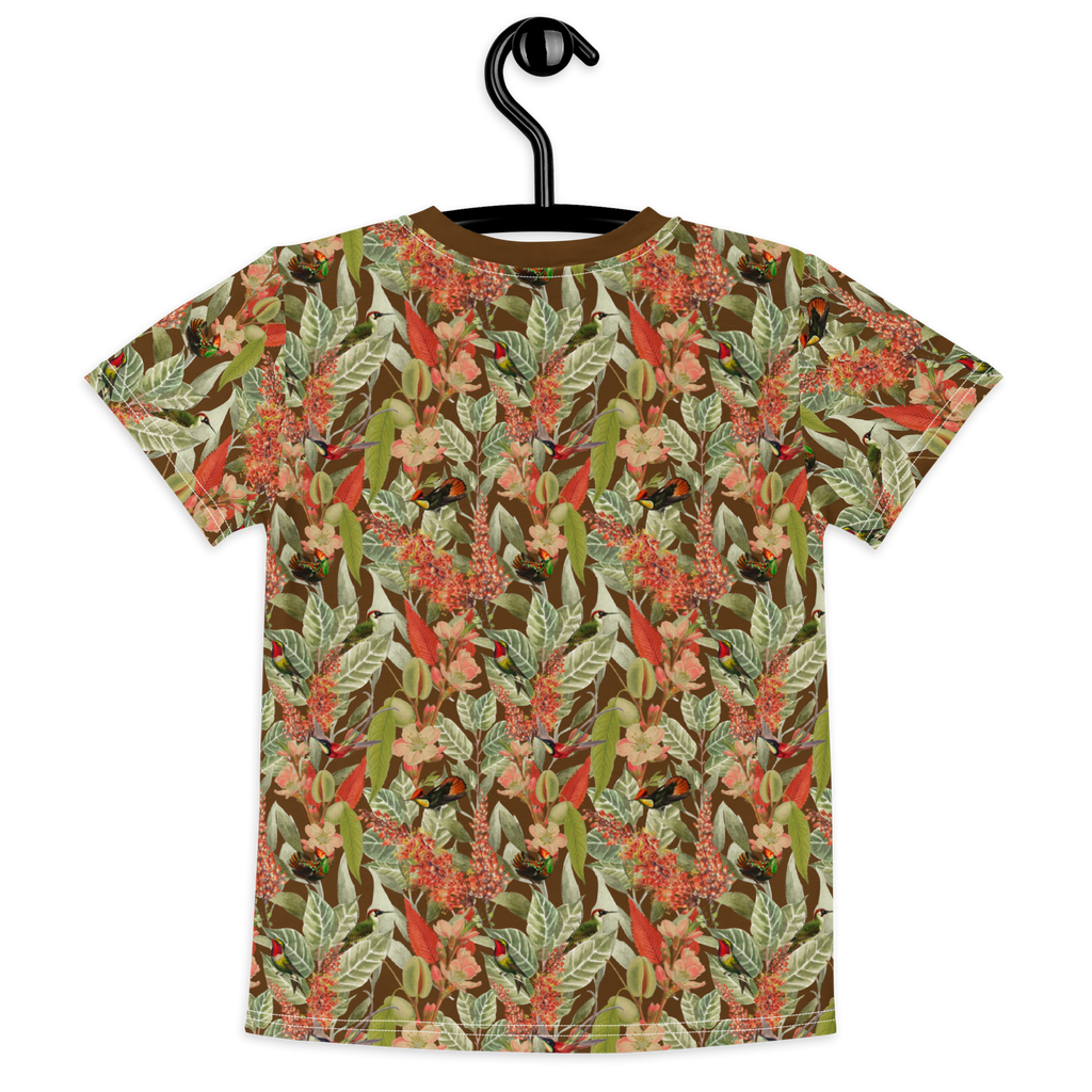 Vintage Garden Kid's Crew Neck T-shirt (with Birds) - Small Print - Brown